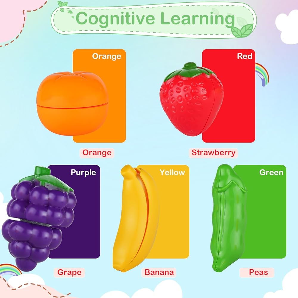 ✅ألعاب تعليمية: التصميم الواقعي والألوان الزاهية لمجموعة لعب تقطيع الطعام هذه لا تجذب انتباه الأطفال الصغار فحسب، بل تعمل أيضًا على تحسين إدراك الألوان. إن تقطيع الطعام بميزة "التقشير" أو "القشرة" سيحسن التعرف على الأطفال والمهارات الحركية. & التنسيق بين اليد والعين!