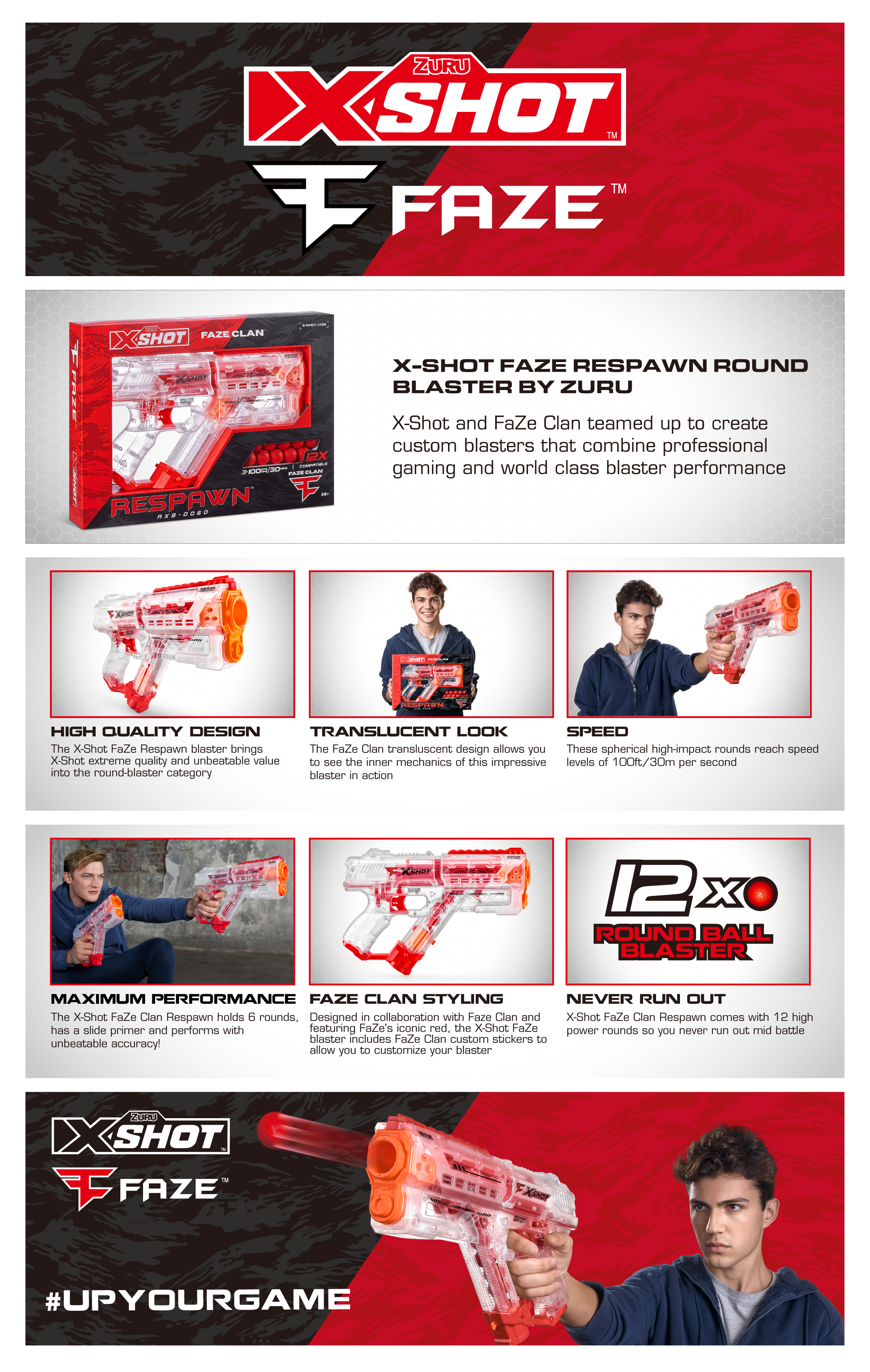 FAZE CLAN STYLING: Designed in collaboration with Faze Clan and featuring FaZe's iconic red, the X-Shot FaZe blaster includes FaZe Clan custom stickers to allow you to customize your blaster.