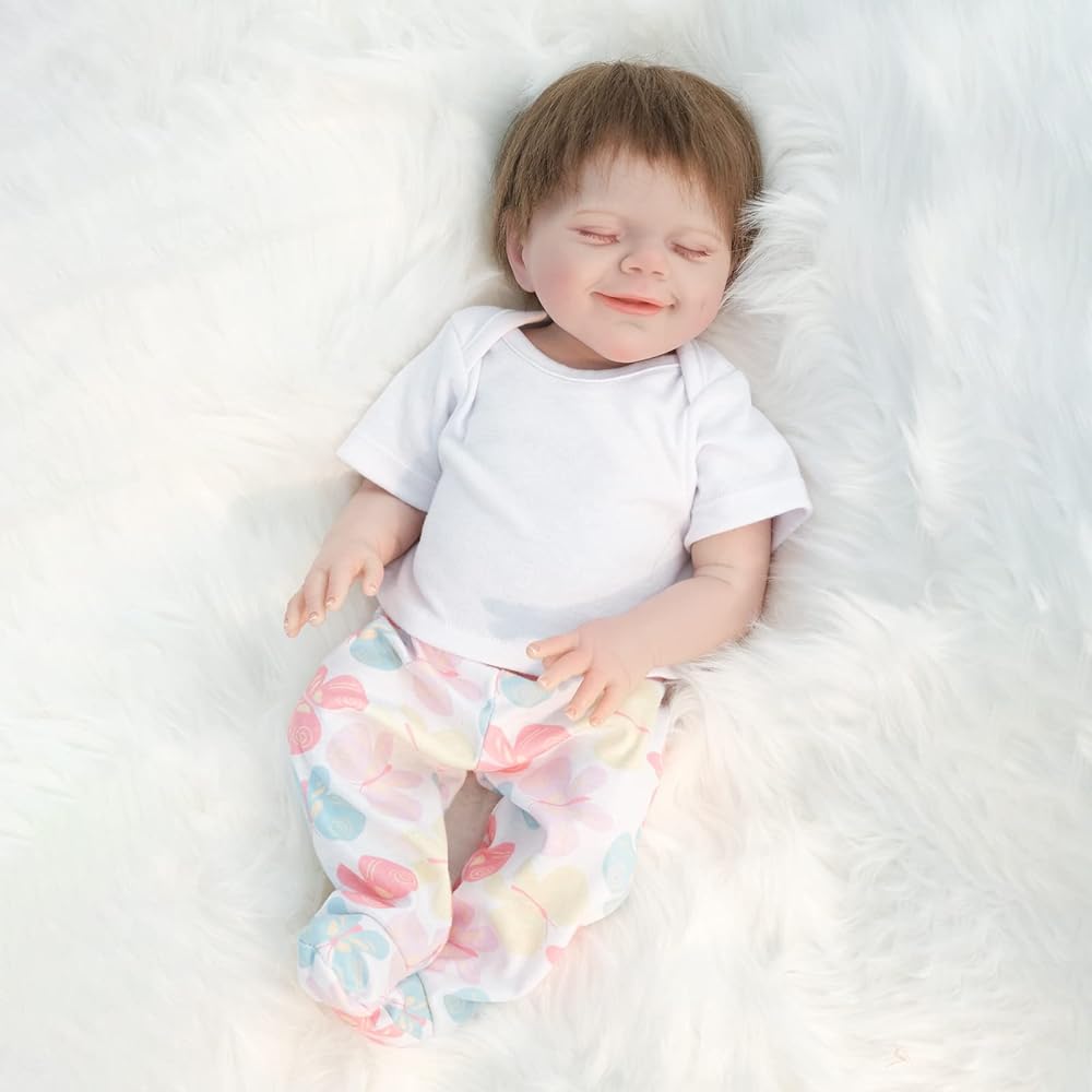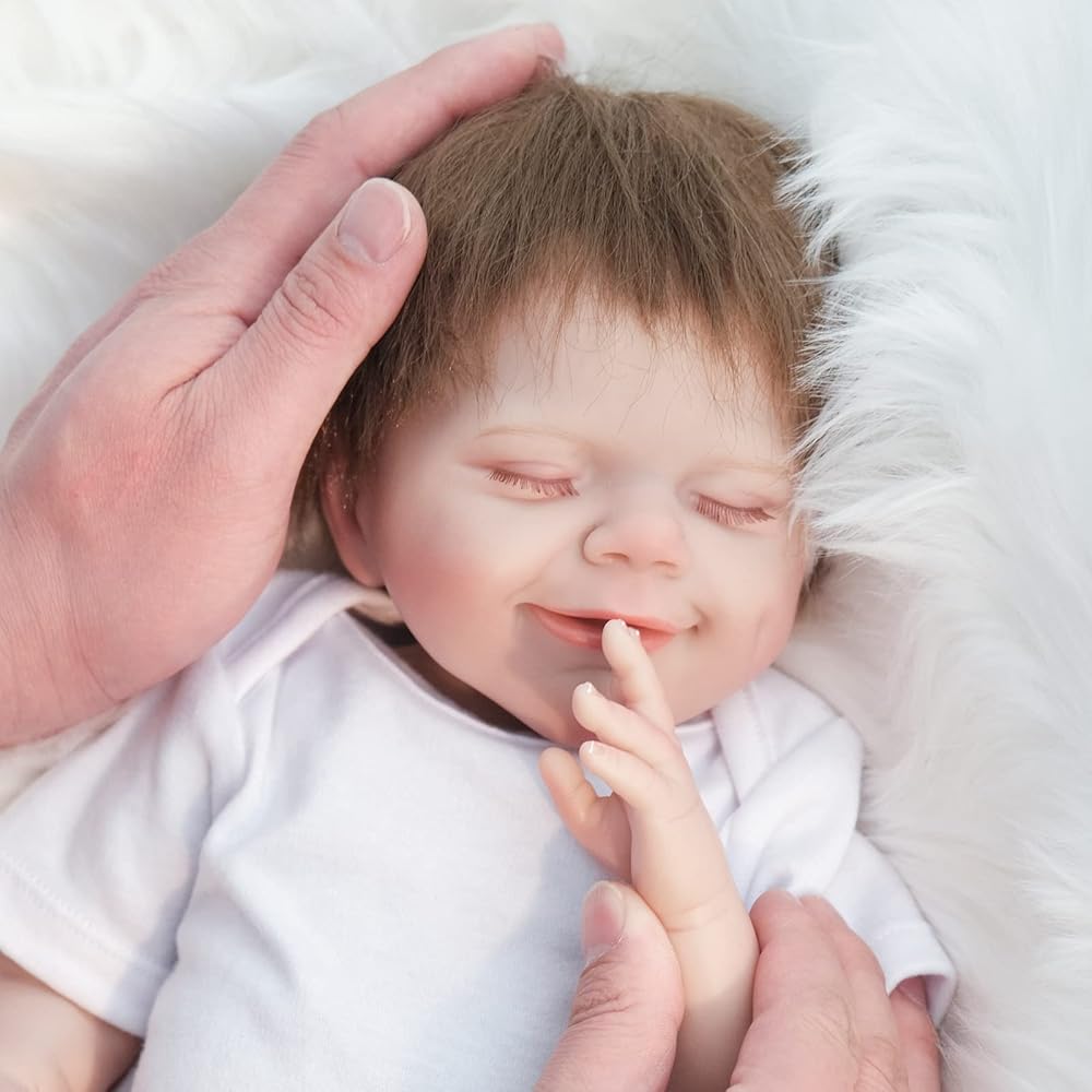 Reborn Sleeping Baby Dolls: Reborn baby doll bruny has an adorable soft face with soft hair, flexible hands, and feet with nails. This is a reborn baby doll in closed eyes. The reborn baby doll is made of soft vinyl silicone. The realistic newborn baby doll is jointed like a baby doll. The lifelike baby doll is anatomically correct.
