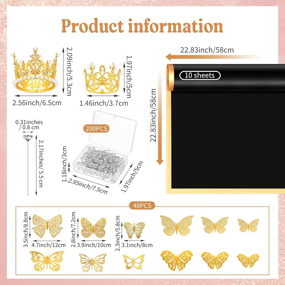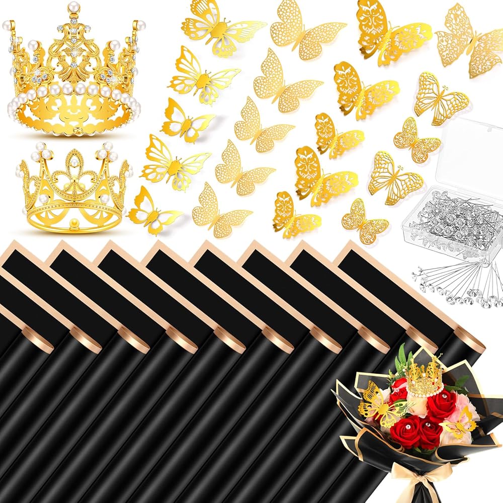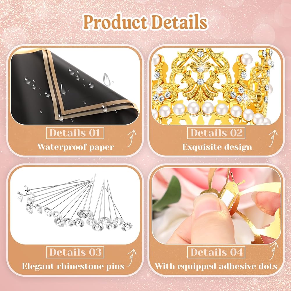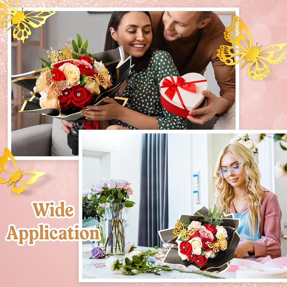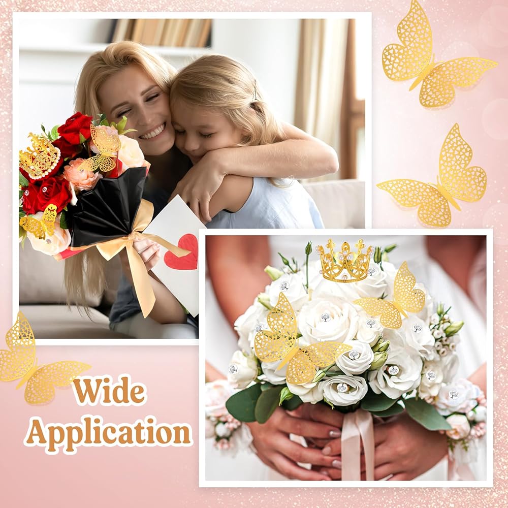 These 3D butterflies for crafts and crown cake toppers are mainly designed in rose gold, classical and vintage, the rhinestone head pins are simple and versatile, which can easily match various flowers.