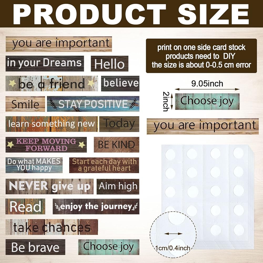 Features: Quality material: The inspiring quote set is made of stable cards, and their surface is covered with a waterproof film, reliable and waterproof, which is stable and not easy to break. The glue point dots are made of quality glue, which is safe for you. These versatile cuts can be die-cut and reapplied, suitable for classroom activities and more are included to help you customize your display. Wide Purposes: The classroom jobs bulletin board decorations set can be attached to bulletin boards and classroom wall, the design creates a fresh, welcoming aesthetic, ideal for kid's bedroom or playroom, a teens room, classroom, office or office cubicle, home wall art, fitness inspiration for a gym, there are so many uses for these inspiring art prints. Specifications: Material: paper Color: as the pictures shown Size: as the pictures shown Package includes: 42 x Motivational Posters 100 x Adhesive dots Notes: Manual measurement, please allow slight errors on size. The color may exist slight difference due to different screen display.