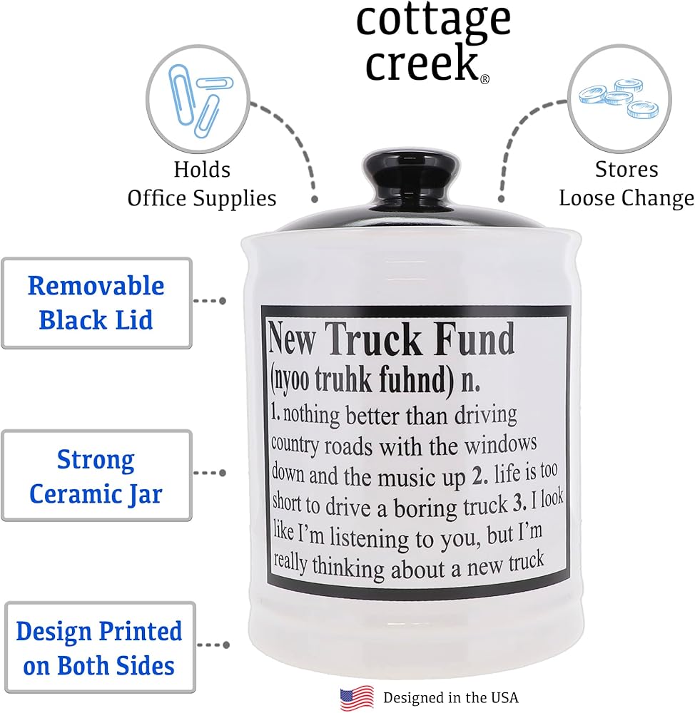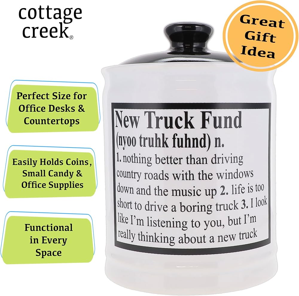 🎁 TRUCK GIFTS: Cottage Creek car piggy bank is a wonderful truck money bank, truck money box, truck bank, truck fund bank, truck fund jar, truck fund piggy bank and more.