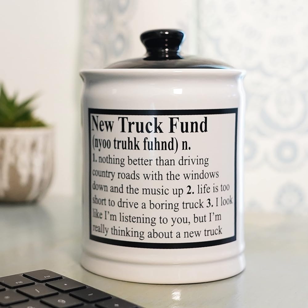 ✅ GIFT BOXED: Packed in a fun printed gift box, New Truck Fund savings banks are perfect novelty truck fund jar for adults, truck fund piggy bank, truck fund jar, truck fund bank, truck fund piggy bank for adults and more.