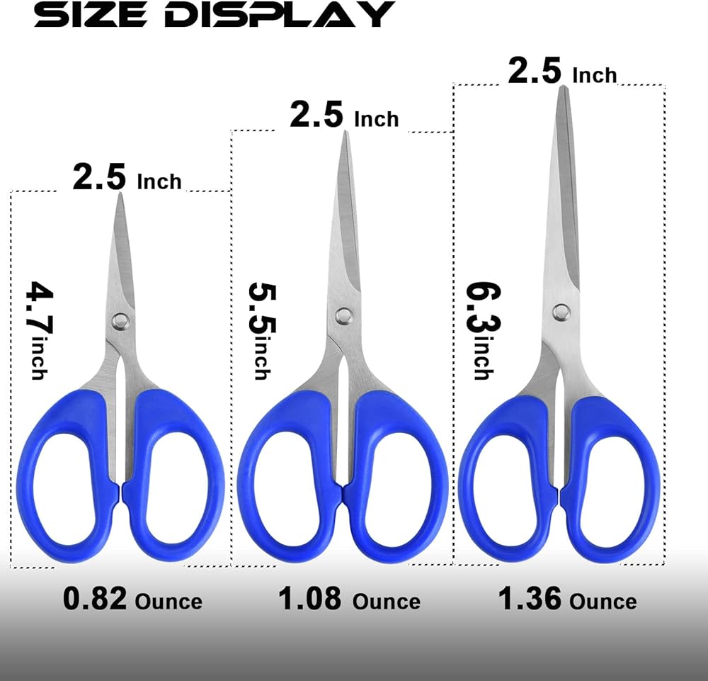 Household Scissors Set of 3, All-Purpose Scissors with Stainless Steel Razor Blades,Suitable for School, Office, Crafting and Family Daily Use, 4.7/5.5/6.3inch, Blue
