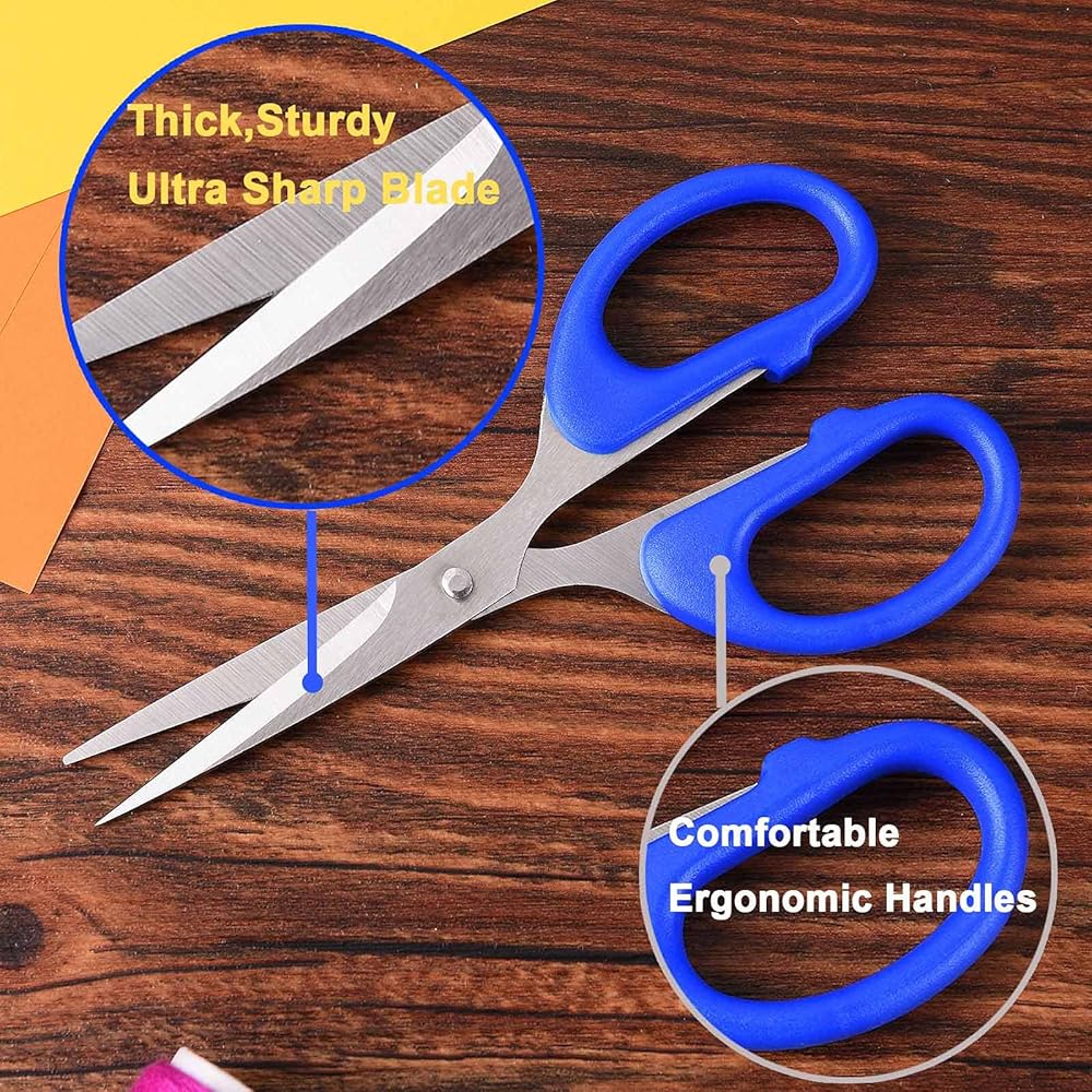 ✁Comfortable Handle✁Ergonomically designed lightweight handle for precise control and super comfort, sharp and easy to store, very suitable for left and right hands.Great as office scissors, school scissors, household scissors, craft scissors, fabric Scissors, left handed scissors, classroom scissors, students scissors, teachers scissors, sewing scissors.