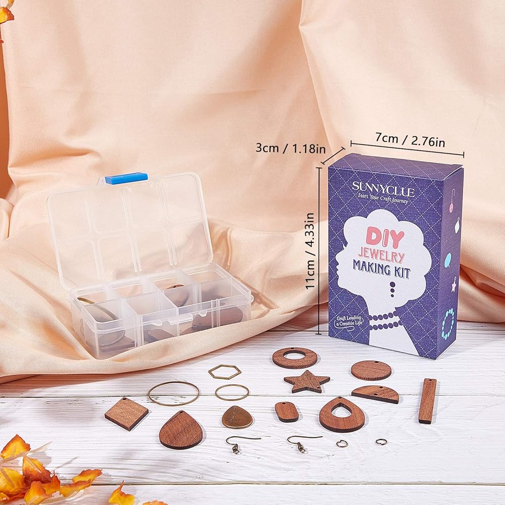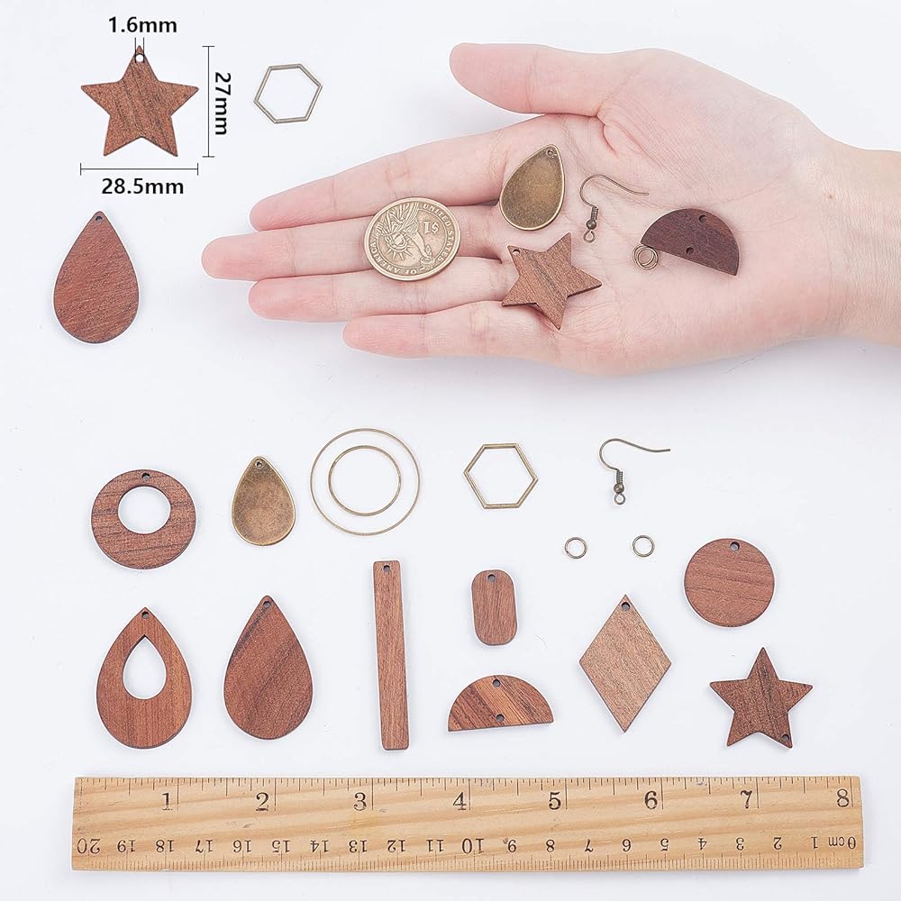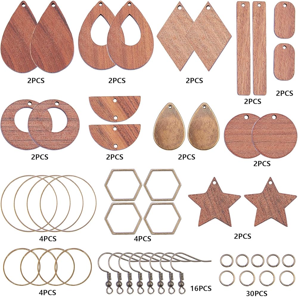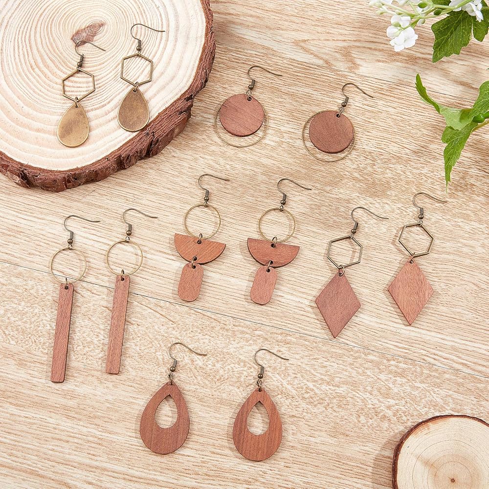 SUNNYCLUE 1 Box DIY 8 Pairs Wooden Dangle Earrings Geometric Wood Earrings Making Starter Kit With 16Pcs Earring Hooks 30Pcs Jump Rings for Women Earring Jewelry Making,Antique Bronze