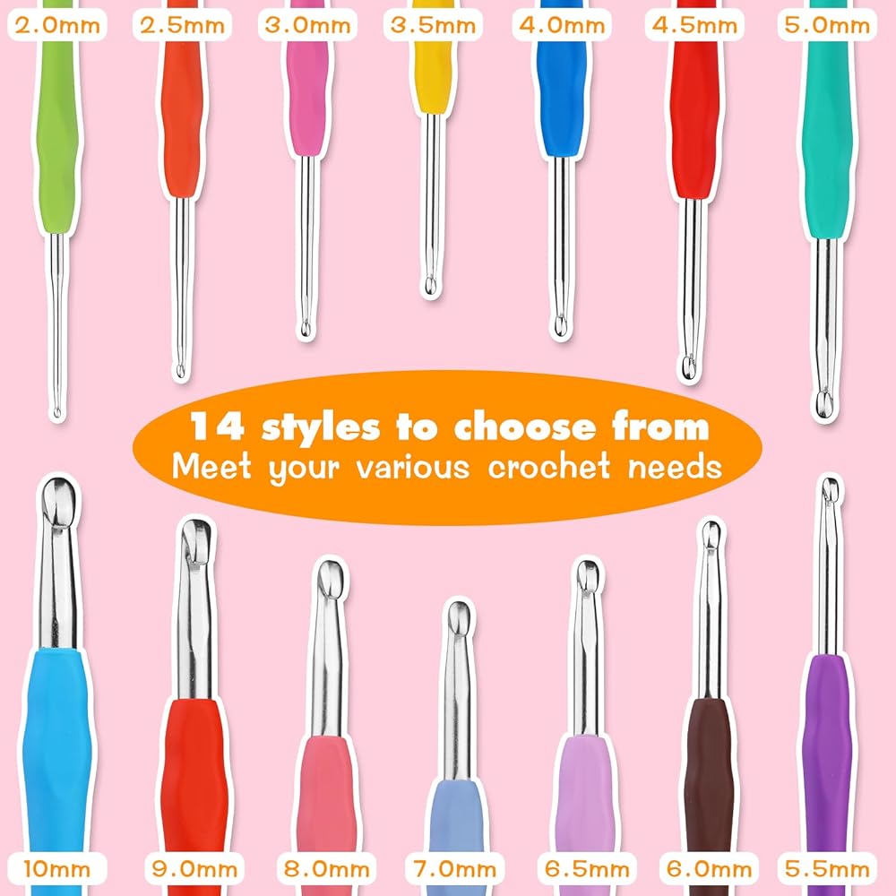 • 【خطافات كروشيه مريحة】تم تجهيز خطافات الكروشيه ذات المقبض الناعم بمقابض مطاطية ناعمة مريحة، والتي يمكن أن تقلل أو تقضي على آلام المعصم أو الأصابع الناجمة عن ساعات طويلة من الكروشيه. المقبض الناعم مثالي للأيدي المصابة بالتهاب المفاصل.
