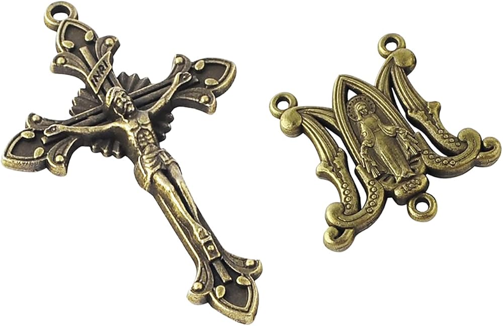 3 Sets of Catholic Virgin Mary Centerpiece and Pardon Crucifix for DIY Making Rosary