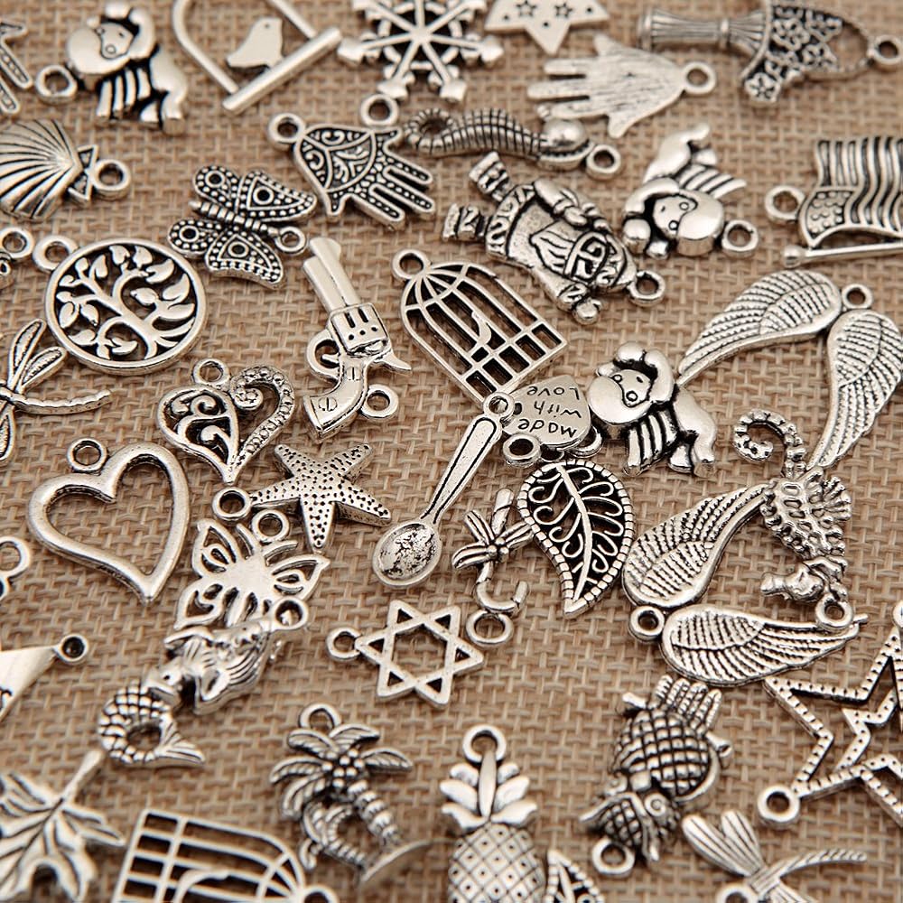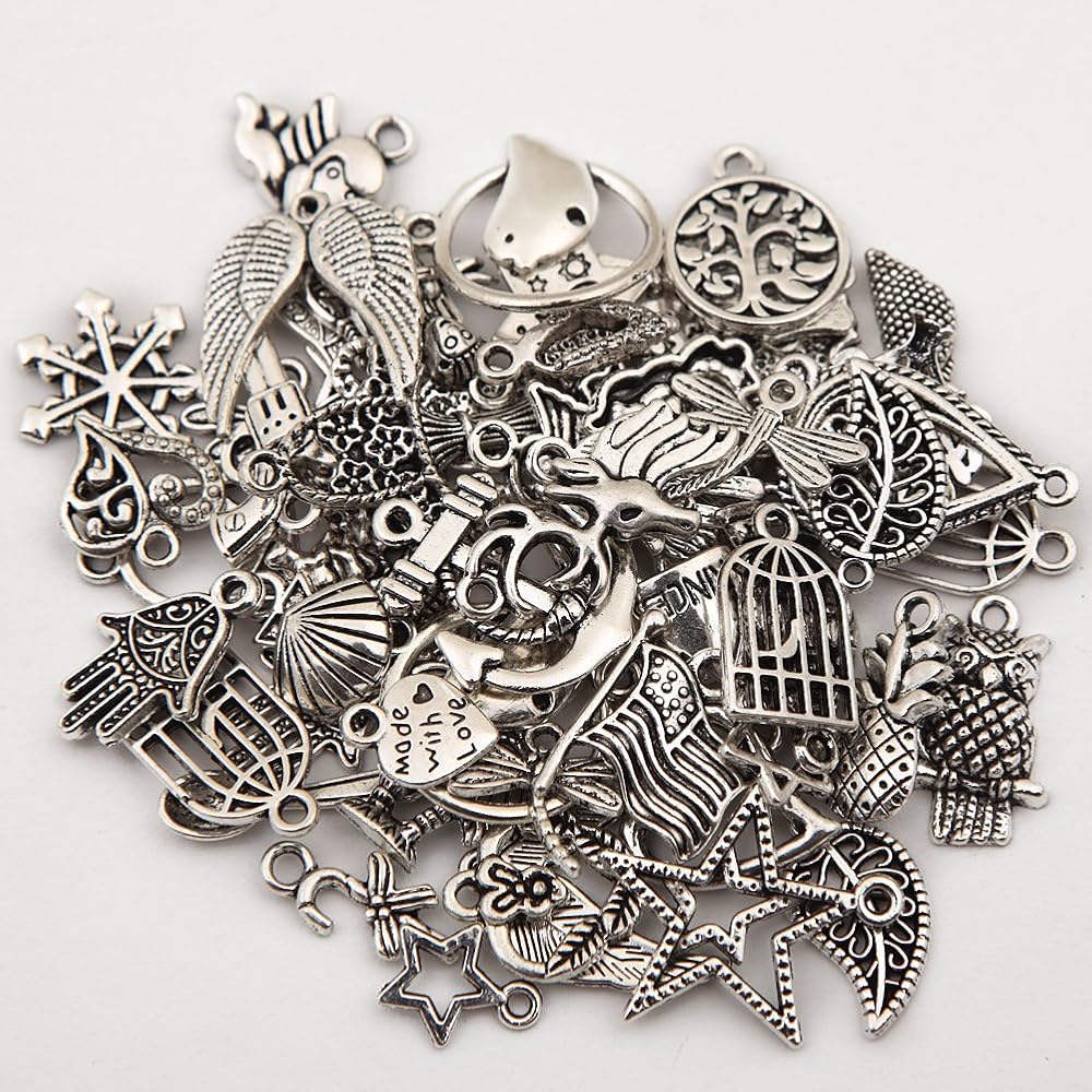 Packing:100Pcs Tibetan Silver Metal Charms Pendants DIY for Necklace Bracelet Jewelry Making and Crafting