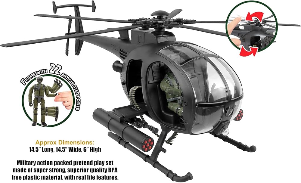 • FULLY POSEABLE:18 action figures that can stand alone with 22 articulated joint points. Rotor blades fold for easy storage.