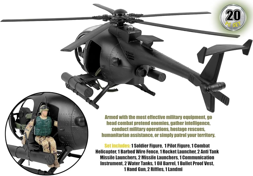 Click N' Play Military Attack Combat Helicopter Toy - 20 Piece Play Set Helicopter Toys with Accessories - Military Toys
