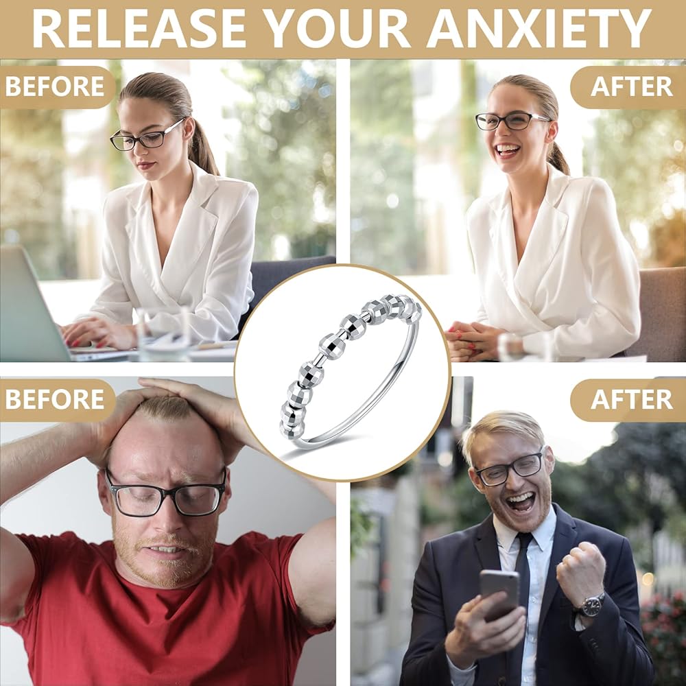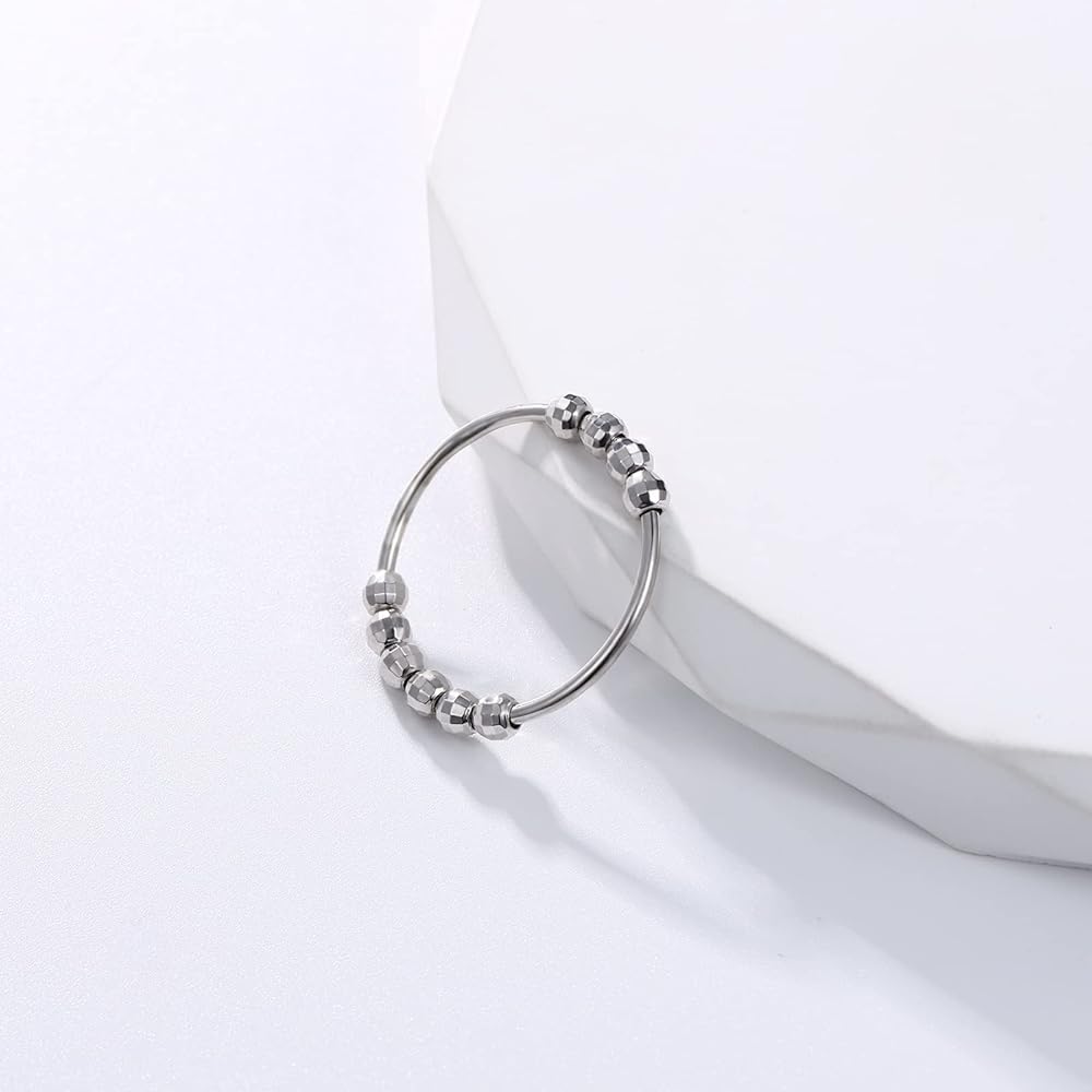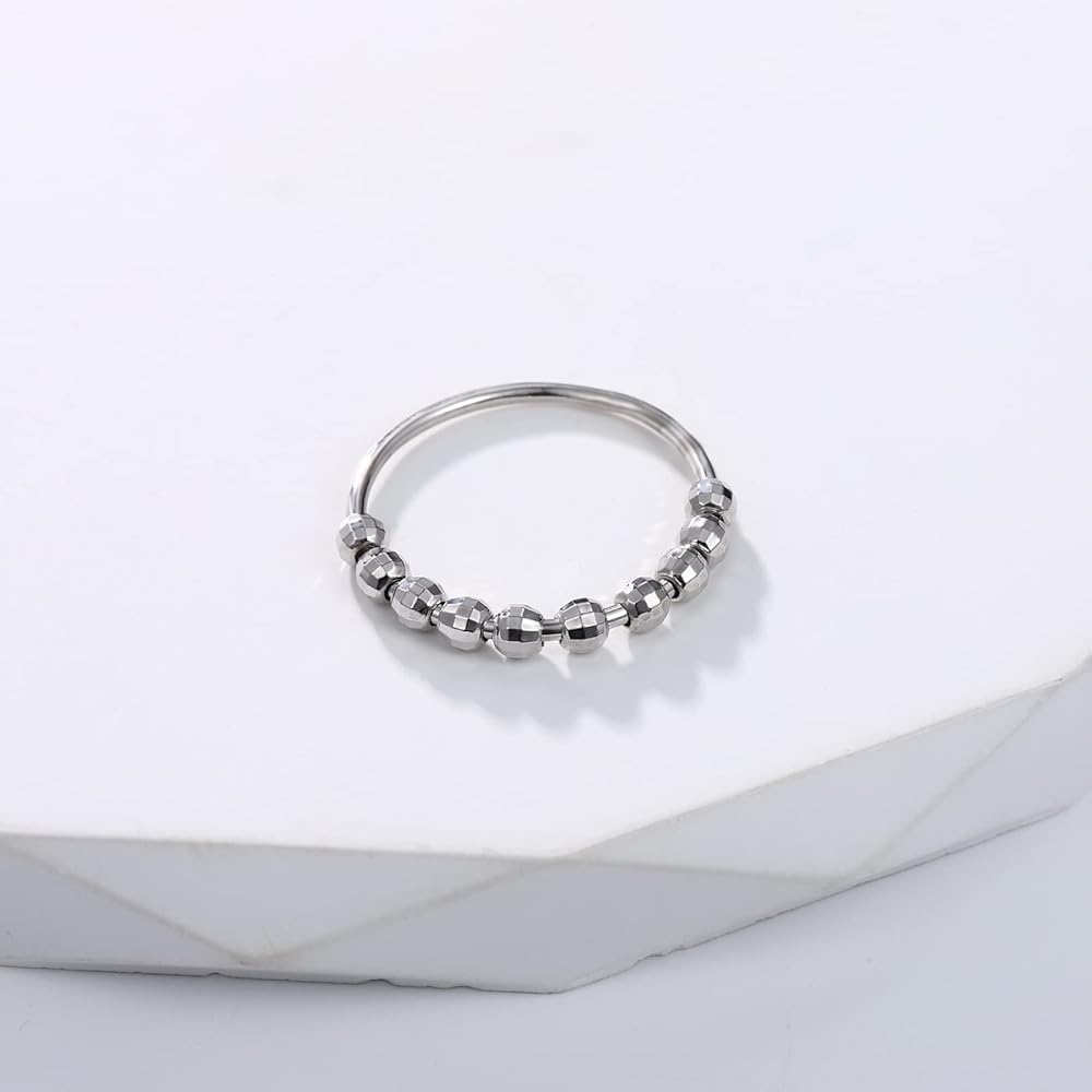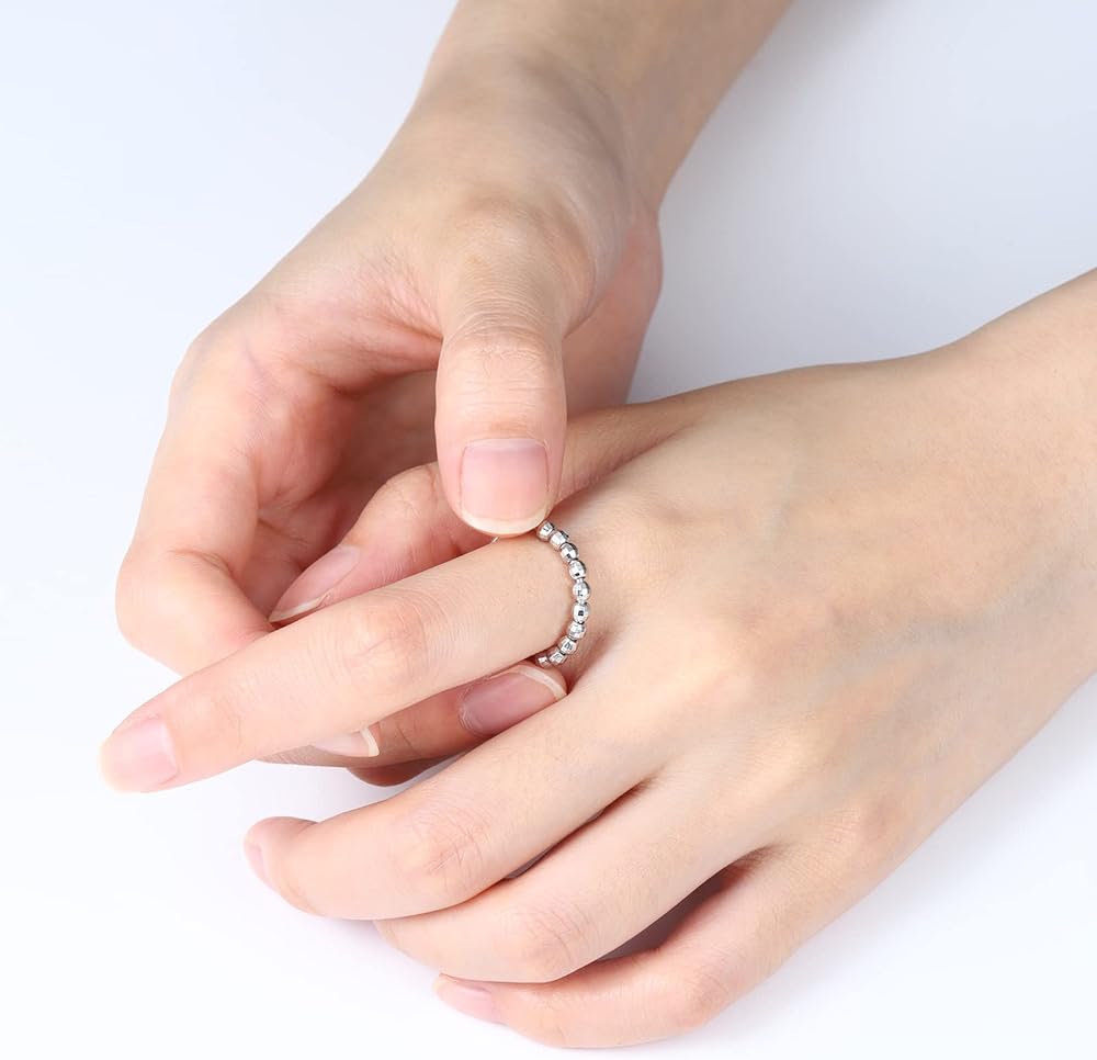 Fidget Ring For Anxiety: Fidget spinner Ring with ten Beads. The beads move freely around the band. When you feel depressed or anxious,twisting the 10 round beads on the spinner fidget rings can help you relieve stress and restore mood, giving you an outlet to get rid of your fidgeting and anxiety.