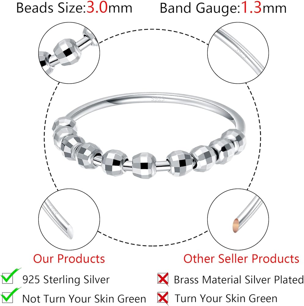 Featured AAA Grade 925 Sterling Silver: Different from cheap brass materials. The anxiety ring made from S925 sterling silver with elaborately polished and have a smooth and delicate touch, nickel free, lead free, and hypoallergenic, won't turn your skin green or hurt your skin.