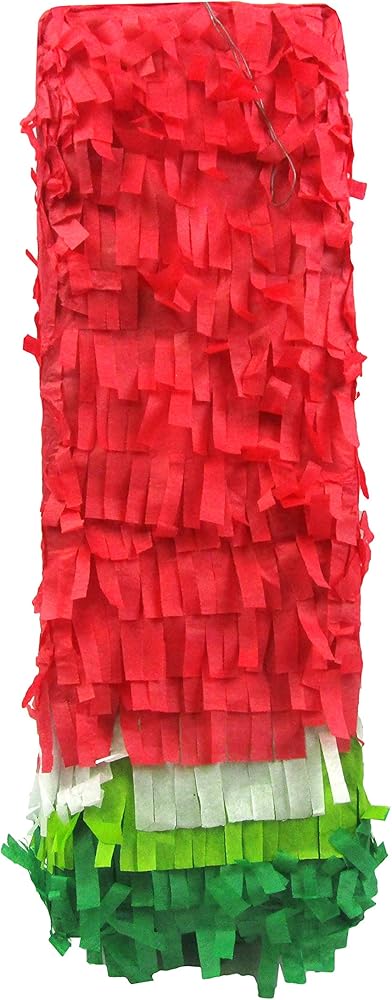 - Pinata is dressed in fringed-cut tissue paper and decorated with print cutouts
