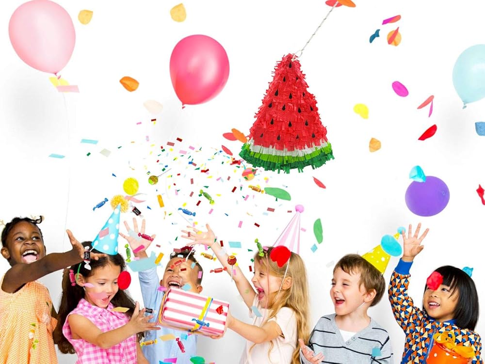 - Pinata comes with cable tie to hang from and opening at the back for adding fillers. Read description for pinata game instructions