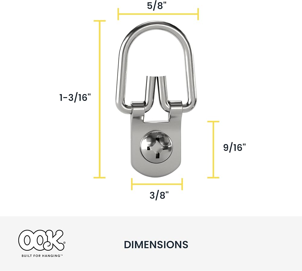 OOK ReadyScrew D-Ring Hangers are great for securing mirrors or open back frames for pictures or art. These hangers are designed with pre-threaded screws, making it easy to install. The OOK mirror/picture hangers feature a zinc finish and are made of a steel material for reliability. Simply place in desired location and use handheld screwdriver to tighten screws. When using picture hangers ensure that you have the correct sized wall hanger to pair for weight ratings. This OOK picture and mirror hanger is capable of holding up 25 pounds and comes with a set of 14.