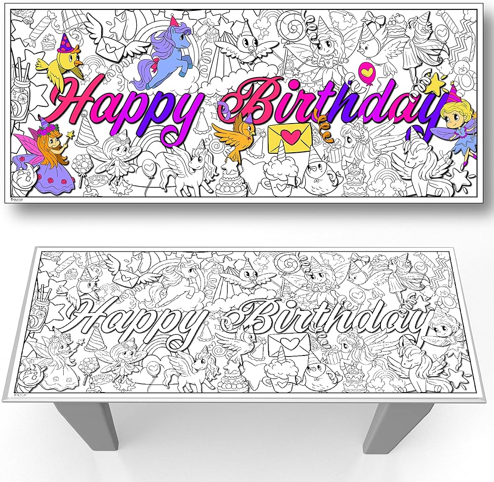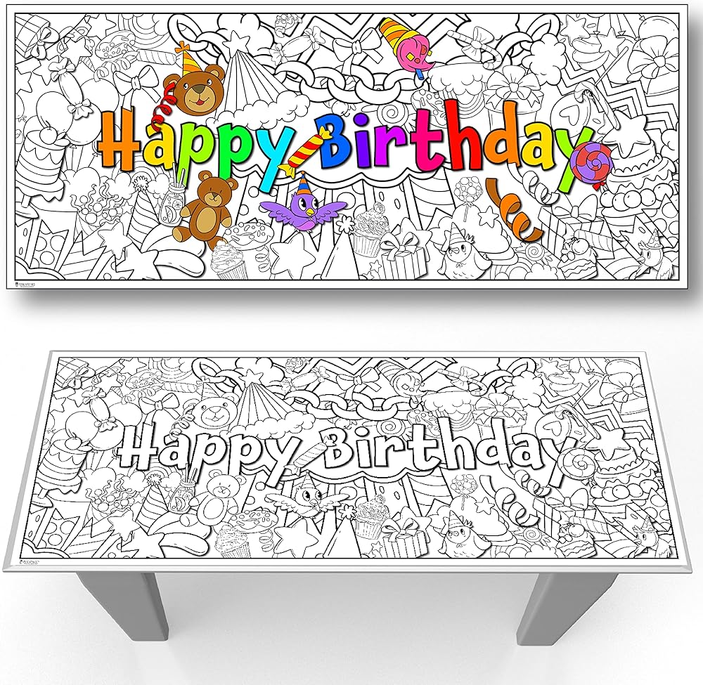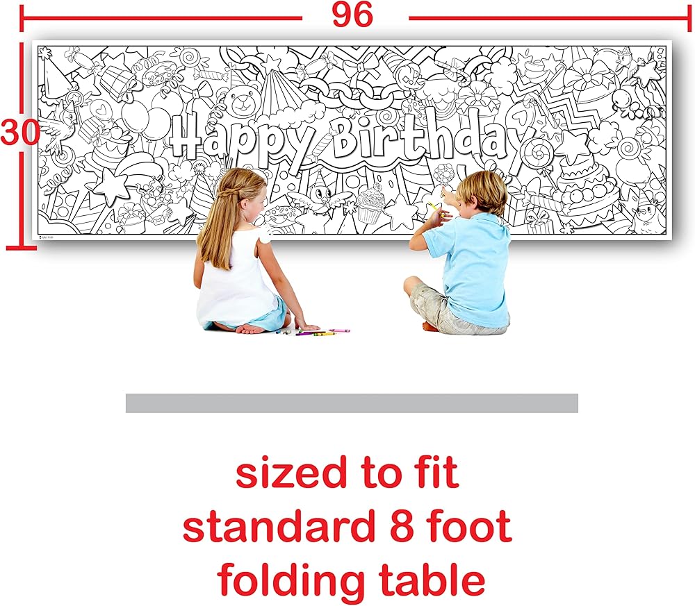 Huge coloring tabletop runner designed to fit perfectly on top of a standard 6 foot folding table.