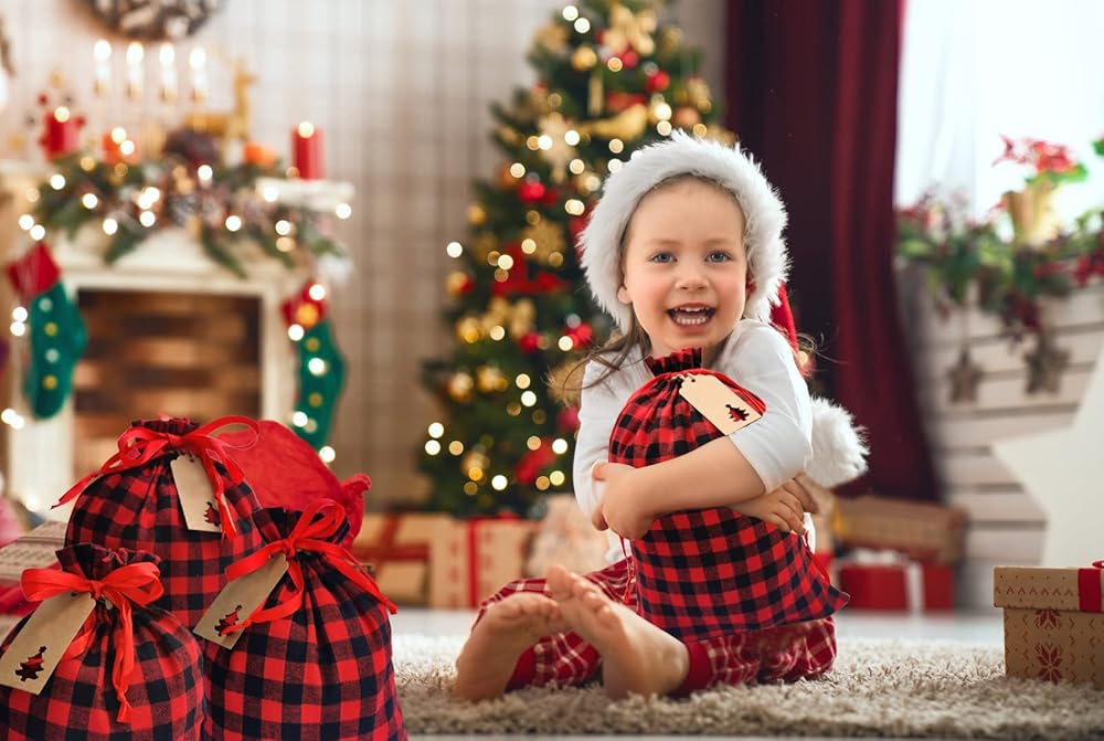 Perfect design: drawstring design, hold Christmas gifts, candy, trinkets, small toys, etc. Just pull a red ribbon to complete a gift wrapping. Easy to carry, you can put it in many places without worrying too much about losing the items in the bag.