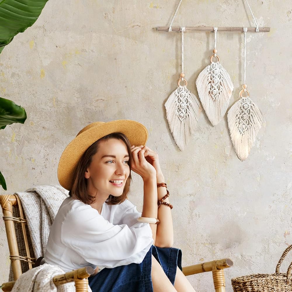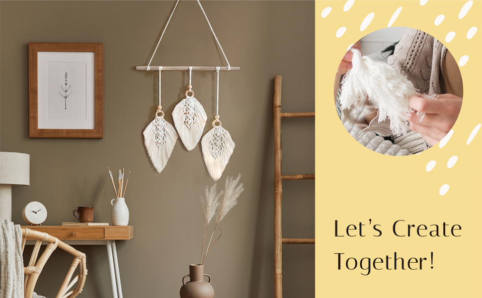 High Quality & Natural Material - Our macrame kits for adults beginners come with 100% natural cotton cord, natural wooden rings, beads and a stick. Sturdy and premium quality natural material makes your DIY woven wall decor more durable and long-lasting. Non-toxic and non-bleached wooden accessories with beautiful and natural colors are perfect to match any room decor style.