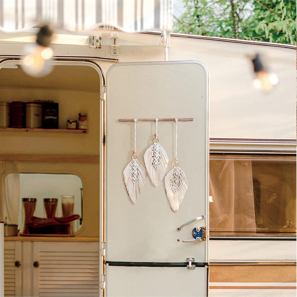 DIY Macrame Starter Kits - VUDECO DIY macrame kits include 1 roll of 49 yards 3 mm natural cotton cord, 3 x wooden rings, 3 x wooden beads, 1 x wooden stick, 4 x leaf templates, 1 x glue, 1 x comb, 1 x instructions for macrame patterns videos. Complete macrame kits for beginners crafting boho macrame wall hanging for woven wall art.