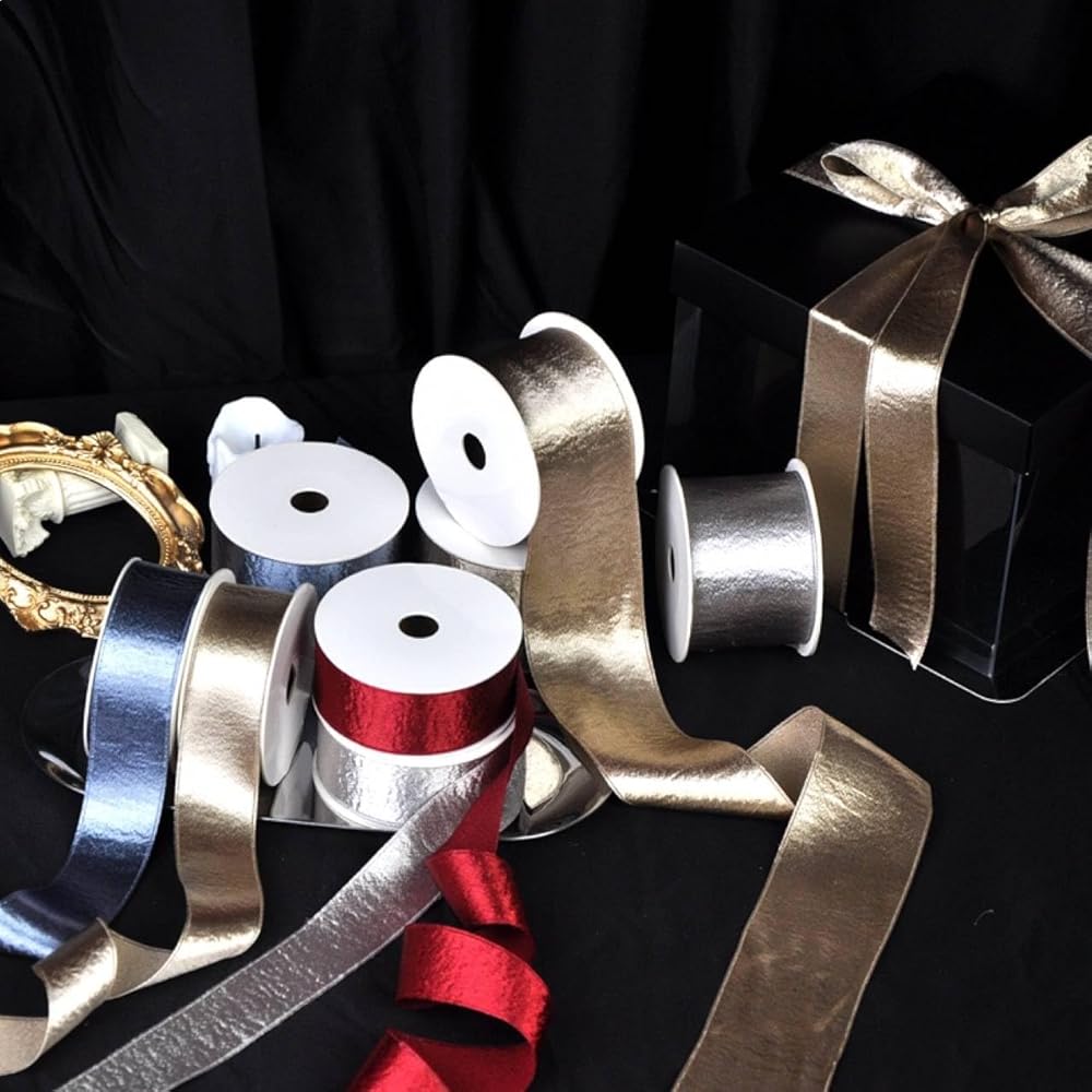 The 1.5-inch width is perfect for various applications, from gift wrapping to crafting and decorating. The elegant gold color gives your gifts a sophisticated look, and the ribbon's shiny and reflective surface catches the light beautifully.