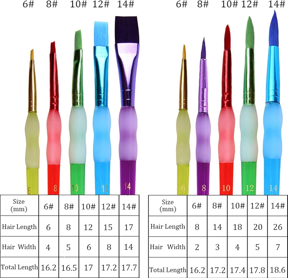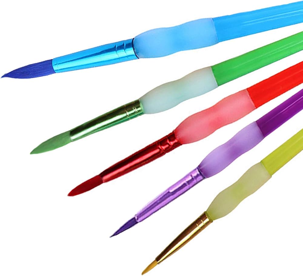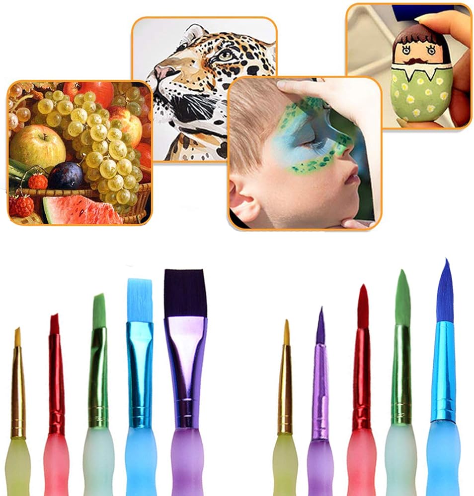 SPECIALLY DESIGNED WITH CHILDREN IN MIND – Larger diameter handles with soft rubber grip are easily and more comfortably to held by small hands, The handles are made of acrylic material , They're easily cleaned and the acrylic handle won't chip or crack like painted wood handles brushes.Safe,long-lasting brushes.