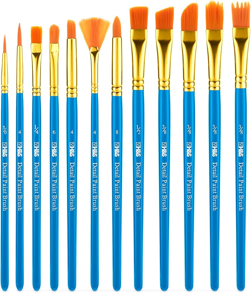 "H&S Acrylic Paint Brushes Set for Artists and Beginners - 12pcs Paint Brush Set for Acrylic Painting and Oil Painting - Artist Paint Brushes with Synthetic Hair
