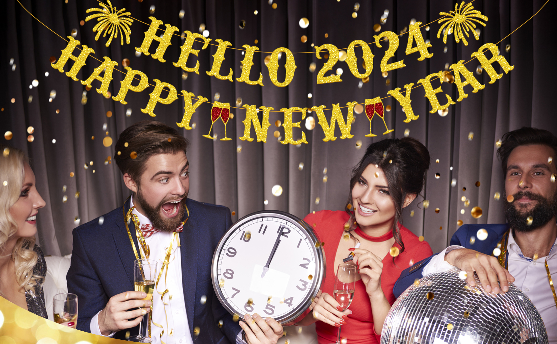 [2024 New Year Decorations] -This HELLO 2024 HAPPY NEW YEAR banner is a good addition to celebrate the coming 2024 party