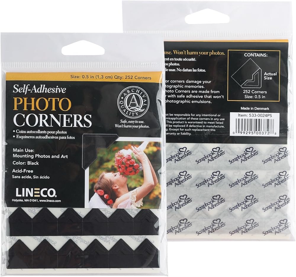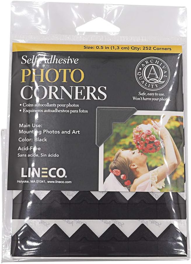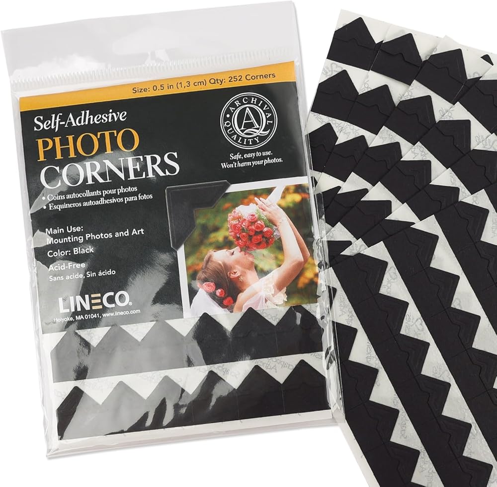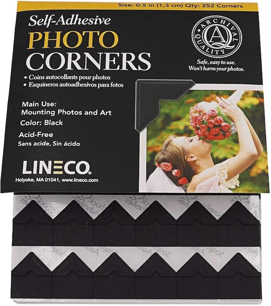 Lineco Self-Adhesive Photo Corners, Archival Quality Acid-Free Pressure Sensitive, 0.5 Inch, Useful for Scrapbooking Mounting on Mat Boards DIY (Pack of 252) Black
