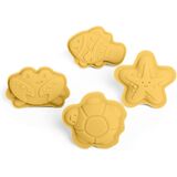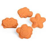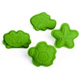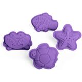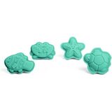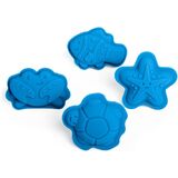 SILICONE SAND MOULDS - 4pc set of 100% silicone sand moulds with starfish, crab, fish & turtle shapes to make fun sandcastle creations; easy to keep clean and comes with a cotton storage bag