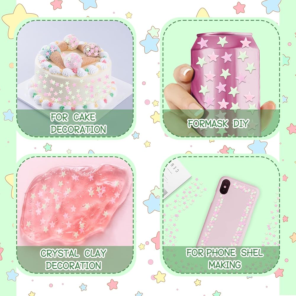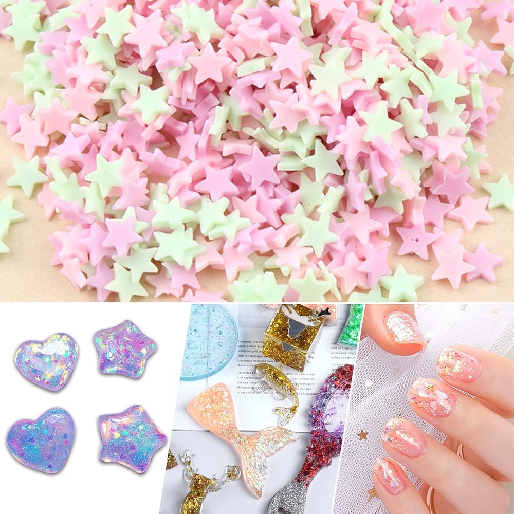 100G Star Polymer Slices Soft Clay Slices Resin Slices Nail Art Slices Supplies for Nail Art DIY Crafts Phone Case Dessert Projects Decoration, Pentagram