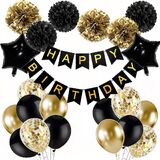 ✔️【Great Value Pack】 -- 1 set "Happy Birthday" paper banner, 6 pcs pompom flower in green/ black/ white (2pcs each color), 15 pcs 12 inch latex balloons in green/ black/ green confetti color(5pcs each color) , 18 inch black foil balloons in star-shaped(2pcs). Durable enough to be reused as well.