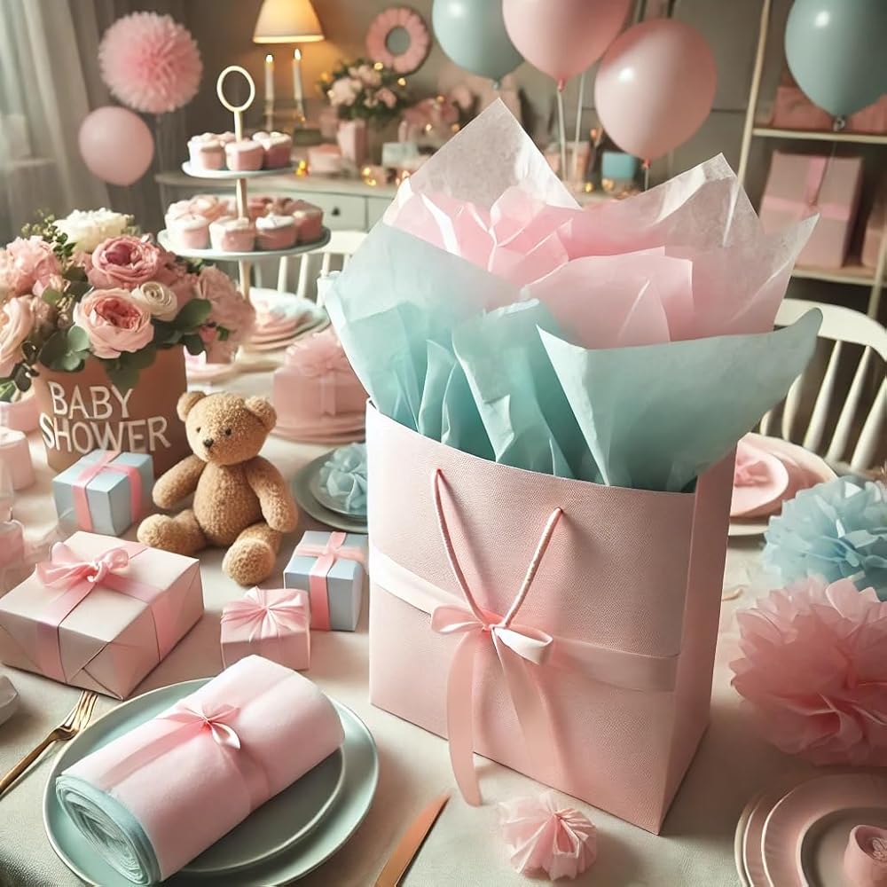• Dress Your Gifts to Impress: Tissue paper is a must-have to keep in your home for your entire gift-wrapping needs – Use them to wrap blessing boxes and tie off with a string or go the great course and pop a sheet or two inside gift bags