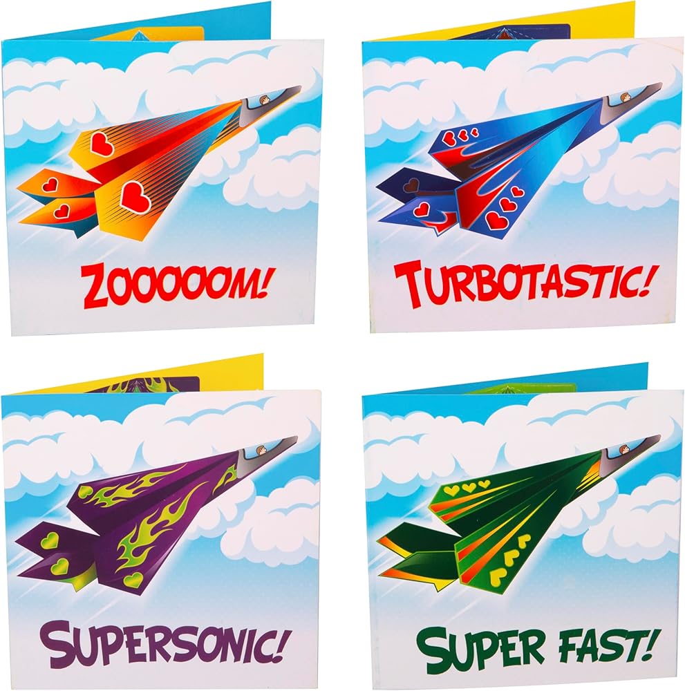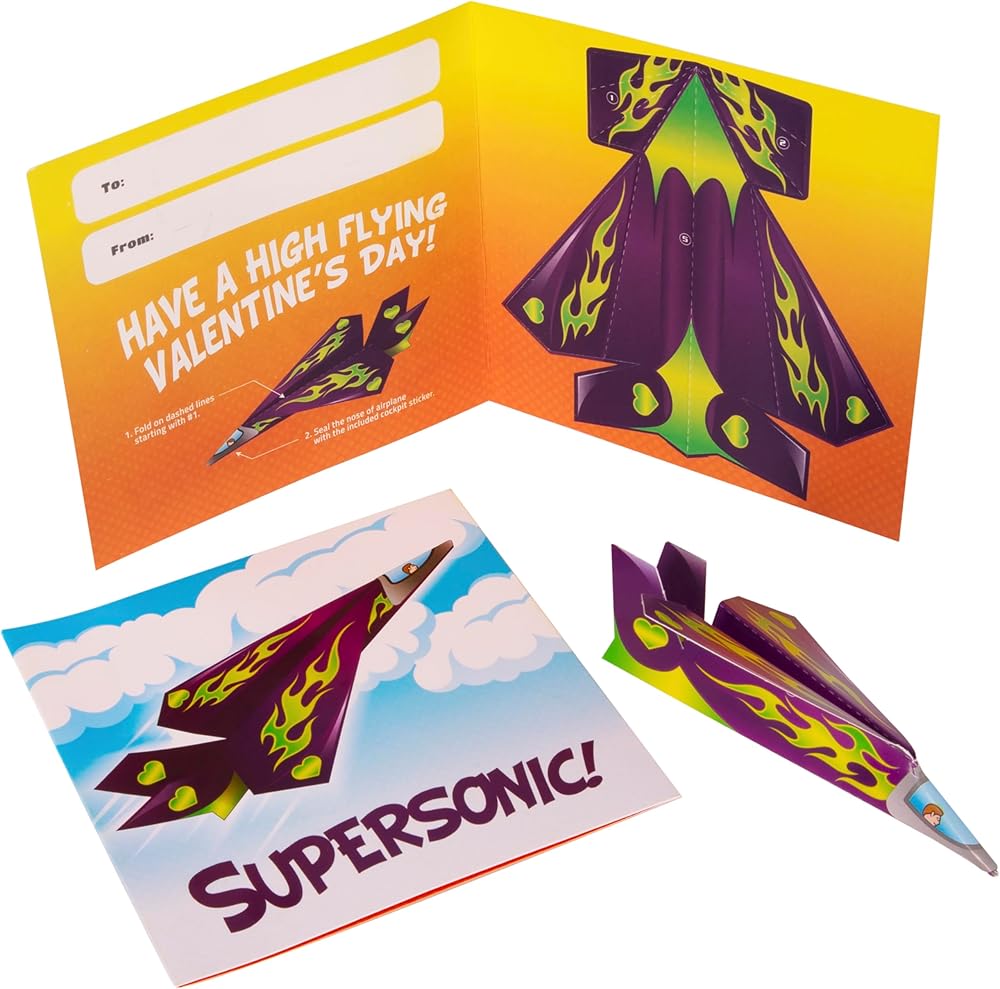 👍Easy to Create : This paper airplane kit valentines day crafts has perforated dotted lines that make it easy to remove the kids paper plane & numbers that provide a simple building instruction so kids don't face any difficulty with paper craft airplane toys. To make real paper airplanes for kids, simply punch out the model airplane flying toy from the card & design it. Then decorate your airplane gift origami paper for kids with pilot stickers & you're ready to fly airplanes for boys.