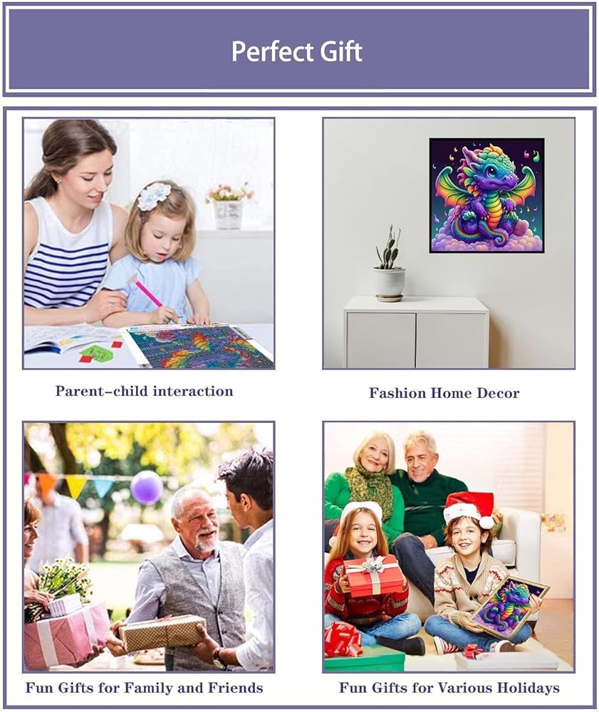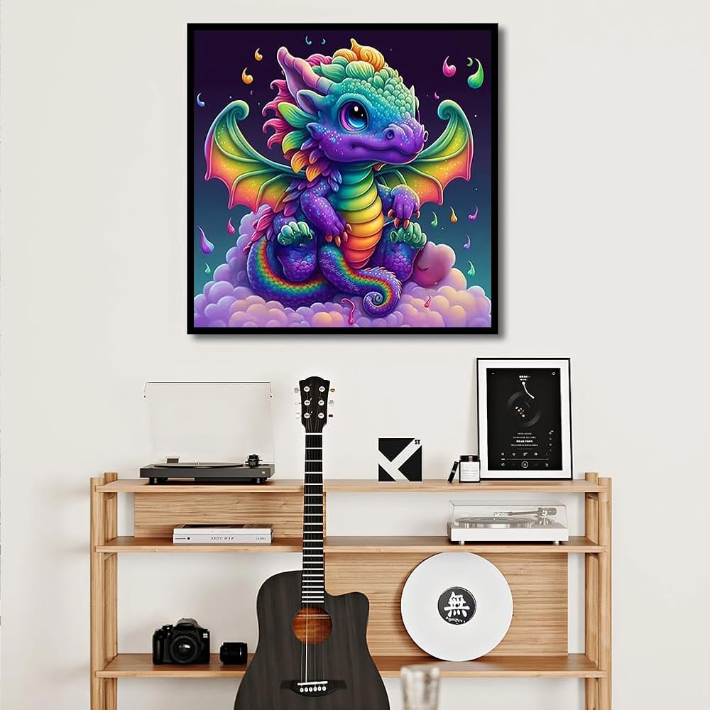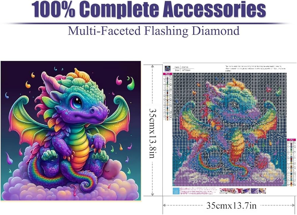 Diamond Art Kits for Adults, Colorful Baby Dragon 5D DIY Colorful Diamond Painting Kits for Beginners,Full Drill Cute Animal Gem Art for Home Wall Decor 14x14 inch