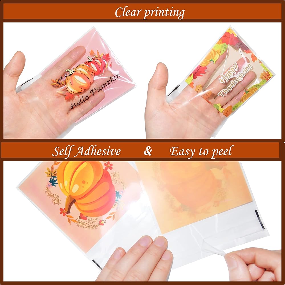 【Self Adhesive】fall cookie bags are convenient to use with self-adhesive designs.Food is not susceptible to moisture