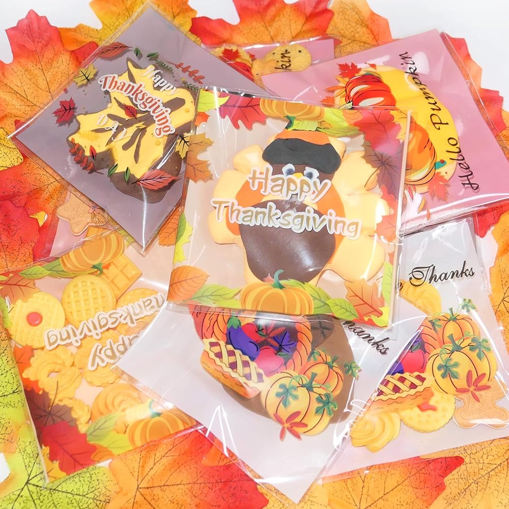 【Widely use】Thanksgiving party favor bags suitable bundle for homemade cake-pops, lollipops, nuts, cookies, treats, snacks,party favors, chocolate, cake pops, berries, beads, dried fruit, jellybeans, or anything you want to keep fresh.Delicate decoration for Thanksgiving party,fall parties or birthday, weddings, Halloween