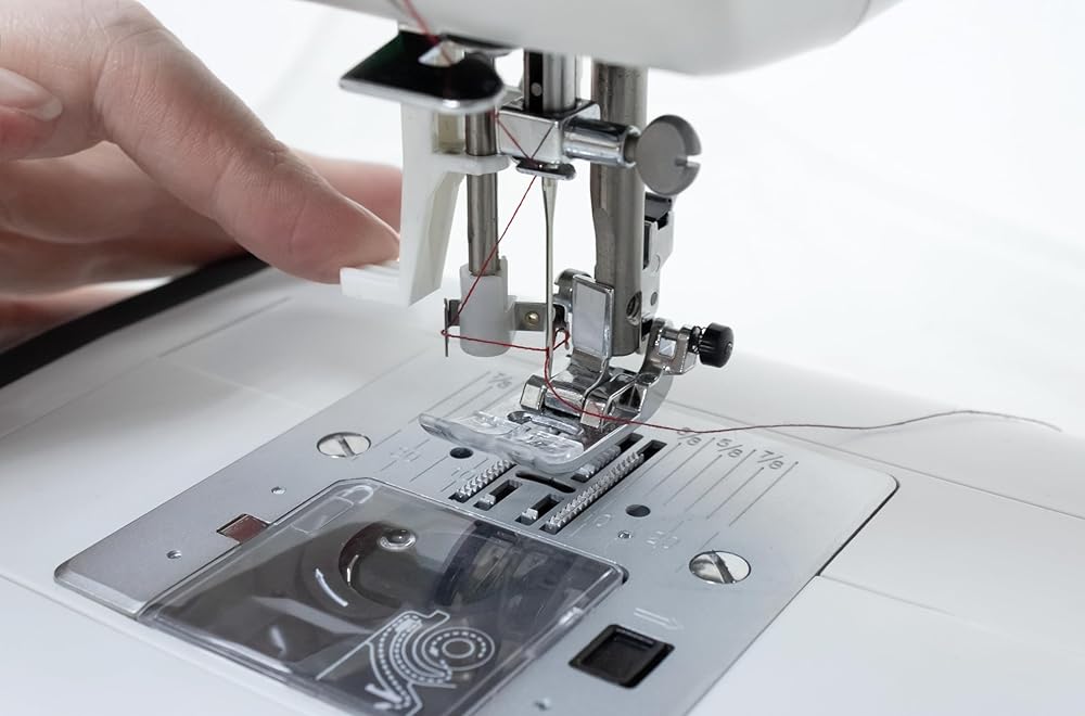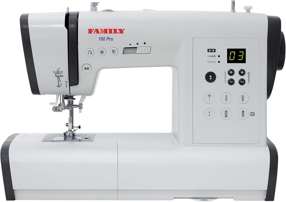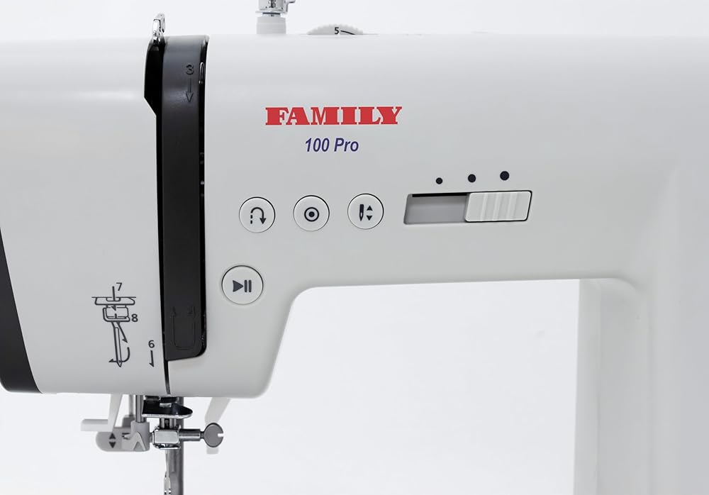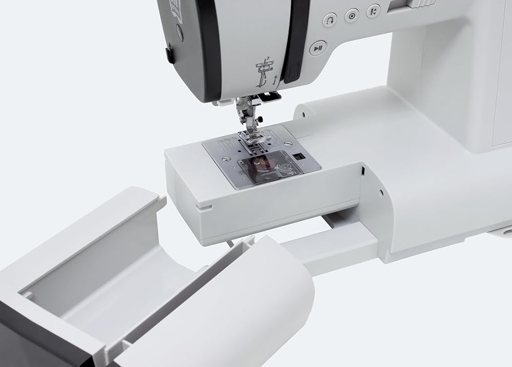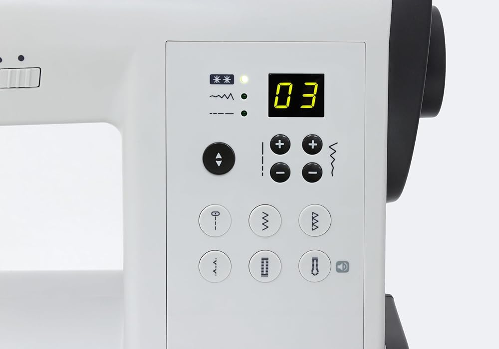A convenient pull-out plate, demonstrating all the stitch applications, allows you to quickly select the stitch you need among a wide variety of styles in order to bring your creative ideas to life. For your sewing projects, hemming and customization, you can choose stitches from various basic, satin and decorative ones. Top Loading Rotary Hook This sewing machine has a top loading rotary hook system that does not require oiling. Some advantages of this system are less vibration and fewer thread jams when sewing and much easier threading. A transparent cover allows you to monitor your thread supply. Useful Features A Start/Stop button allows you to operate your machine at the touch of a button, without using the foot control if desired. Thanks to an easy speed adjustment, you can control your sewing process better, depending on the complexity of your task. Use the needle Up/Down feature for easy pivoting like sewing on corners and curves, preventing layers from shifting. Needle Threader A built-in needle threader makes the whole process effortless: just take the end of the thread, and the needle threader will pull it through the eye of the needle. Quick Setting Control your machine using just a few buttons. After choosing a stitch type, you can change its length and width, which are set automatically. Moreover, the panel has buttons for quick access to essential stitch applications. Extension Table A large extension table is included, providing a level sewing surface for larger projects. Parts and Accessories Included: Foot Control Power Cable Soft Cover Extension Table All-Purpose Foot Zipper Foot Transparent Satin Stitch Foot Overlock Foot Blind Hem Foot Button Sewing Foot Automatic Buttonhole Foot Seam Marker Foot Large Screwdriver Small Screwdriver Bobbins Needle Set Seam Ripper with a Brush Extra Spool Pin Spool Holder Felt Spool Pad