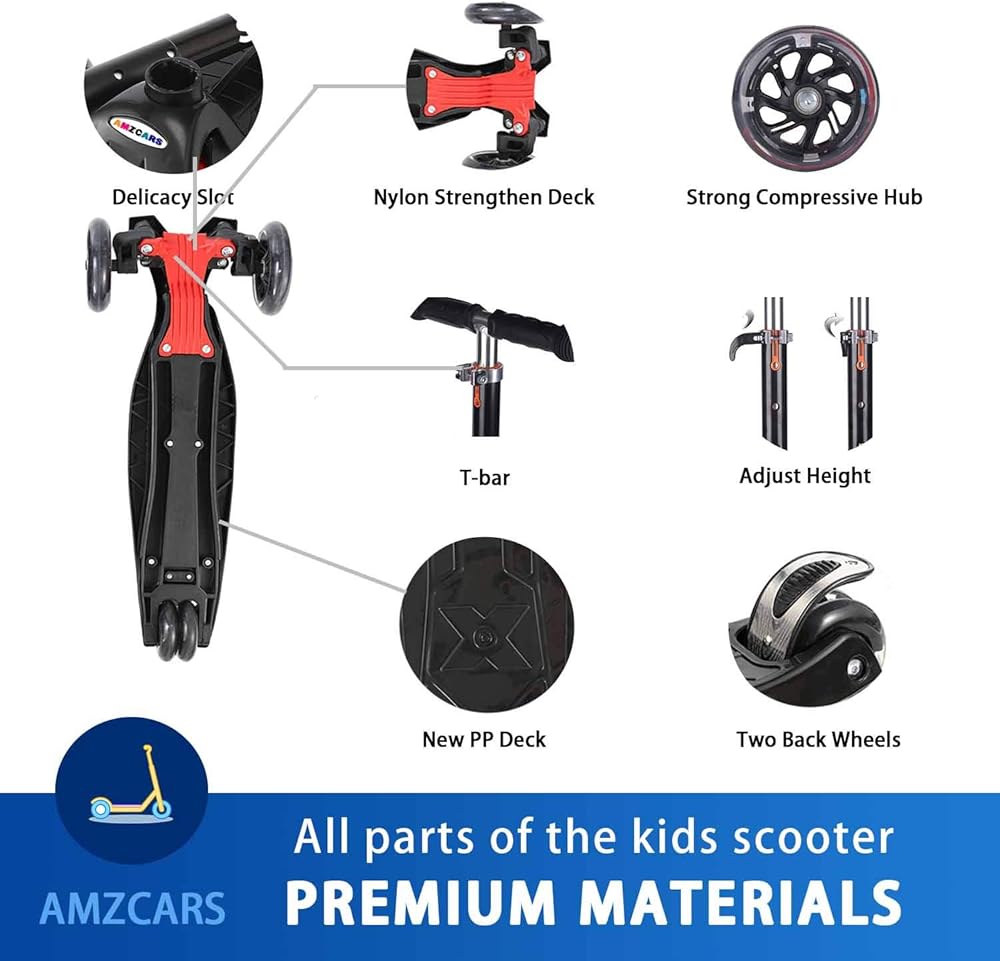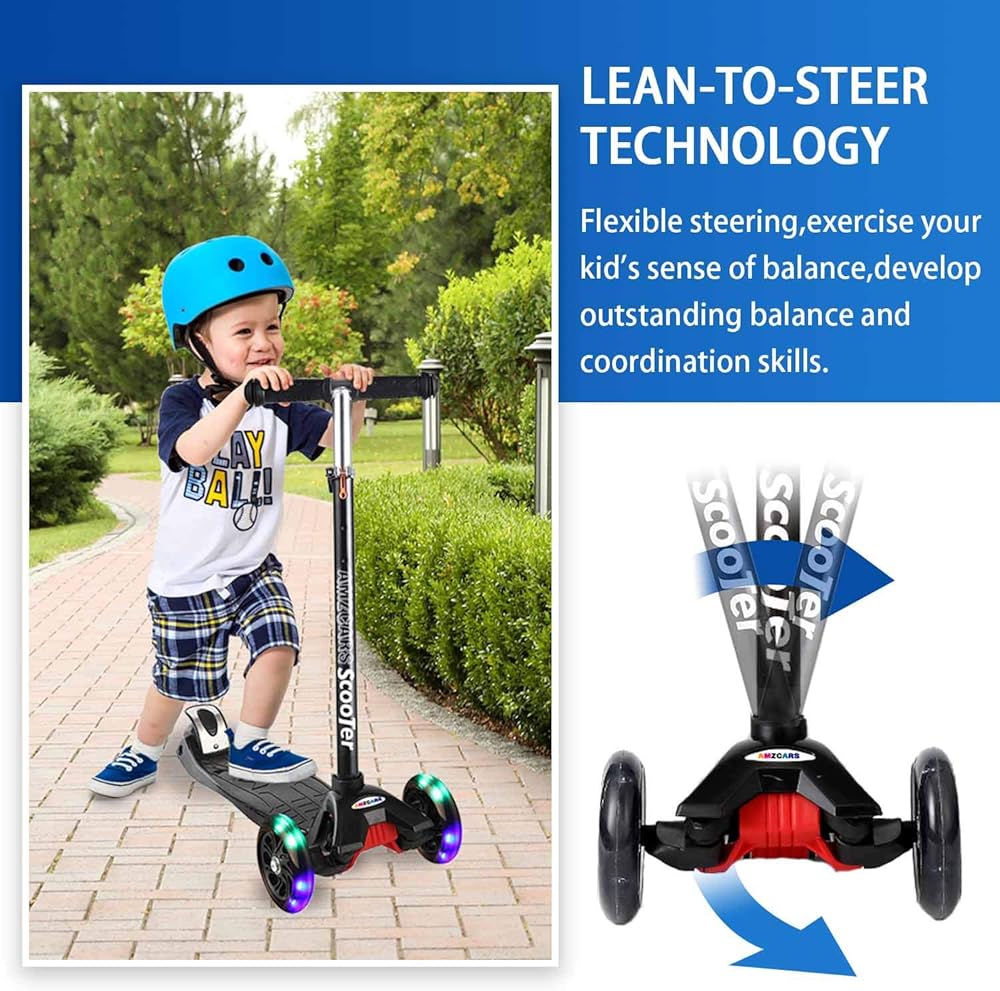 【Lean-to-Steer Technology】Our scooter combination of strong and sturdy design and Lean-to- Steer Technology makes it the most stable Scooter .They have to learn how to lean when trying to turn and also how to stop.This feature allows your children to turn left or right just by leaning,which prevents accidents and sharp turns. 3 wheels scooter gives new riders stability to build their confidence and develop balance skills, coordination and more.