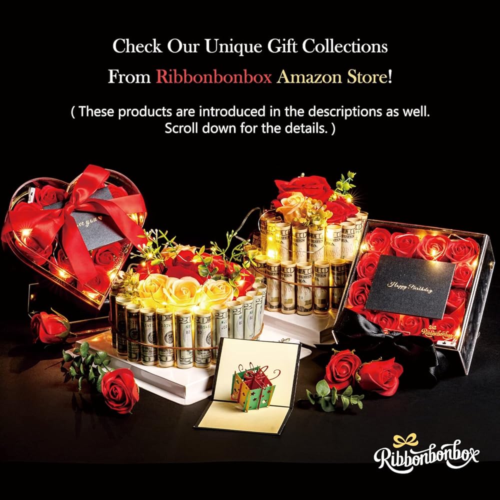 How It Works: This rose box with cake creates a beautiful light effect using built-in LED lights, for a truly romantic and cute atmosphere. Simply fill the plastic tubes with bills by easily rolling them, and provide her with a luxurious experience she will never forget!