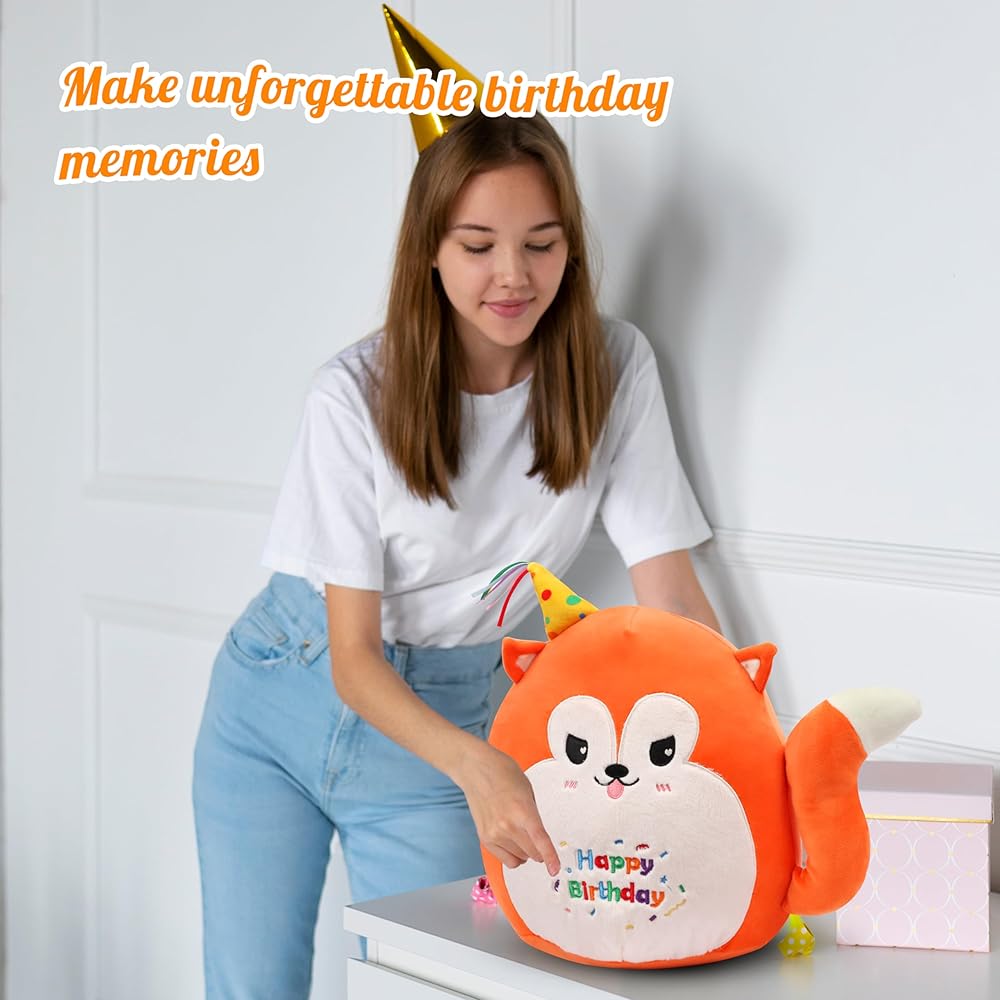 HIGH QUALITY CRAFTSMANSHIP: This birthday bear plush pillow is made of 100% PP cotton, soft and flexible, the fabric is skin-friendly and comfortable. The pattern above are used to print and embroidery process to bring you an excellent experience, We use the exquisite production process in order that it can accompany you for a longer period of time.