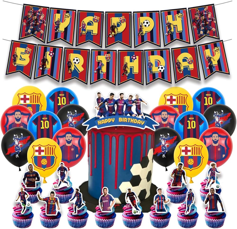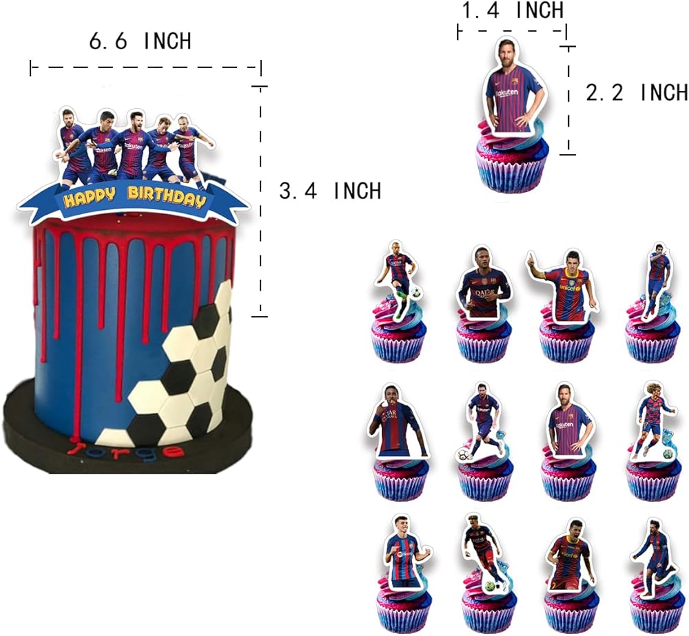 PACKAGE INCLUDING:Pre- assemble Happy Birthday Banner and Unique Cake Topper, 24 Pcs Cupcake Toppers, 16 Pcs Latex Balloons, Our Complete Set of Barcelona Birthday Party Supplies Will Add Amazing to You, Your Family And Friends