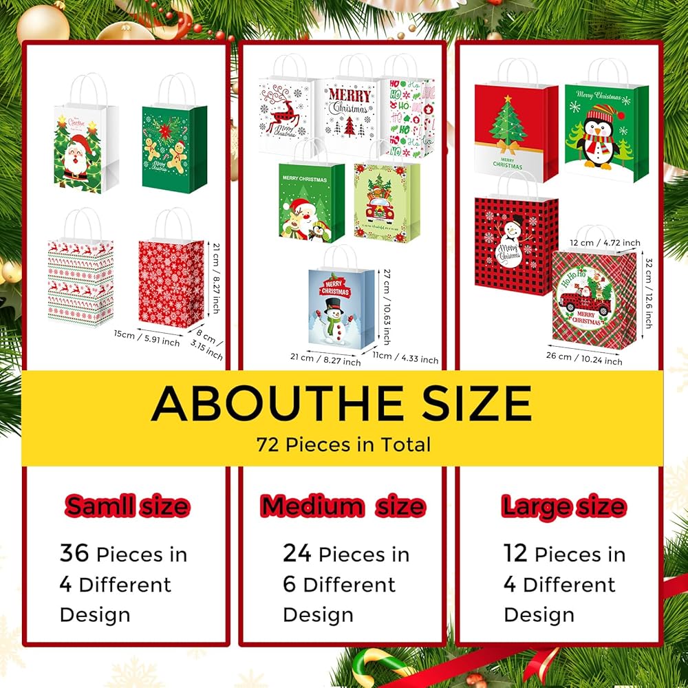 These Christmas gift bags with handles are easy to carry, bring you much convenience and practicality. Besides, with classic patterns printed on the surface, they will bring people a good visual effect, even if you put them on the tabletop directly, letting them feel the strong festival atmosphere.