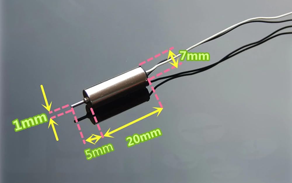 Compact and Lightweight Design: Measuring 7x20mm and equipped with a 1mm shaft, these coreless motors are compact and lightweight, making them perfect for small-sized drones, micro quadcopters, and other lightweight RC applications.