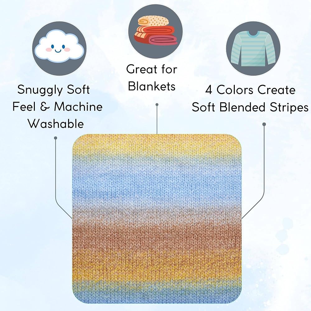 This yarn is 100% ultra soft acrylic, perfect for making a wide variety of garments. Also, it is extremely washable. Unlike animal-derived wools, it won't shrink in water, making it the ideal choice for gifts for children; The Puzzle line of yarns alternates four different colors along the strand. This results in a lovely banding effect that traditionally would require four different colored skeins to obtain. Instead, you get a truly unique looking garment with ease and better weight control.