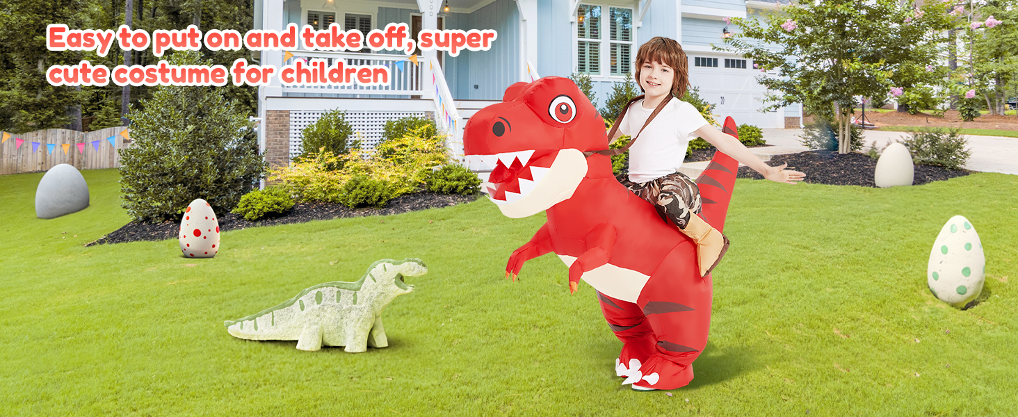 【Premium Quality】 The child inflatable dinosaur costume is made of high strength waterproof polyester which is against rips and tears. Lightweight, durable and reusable, put on and have fun with family and friends now