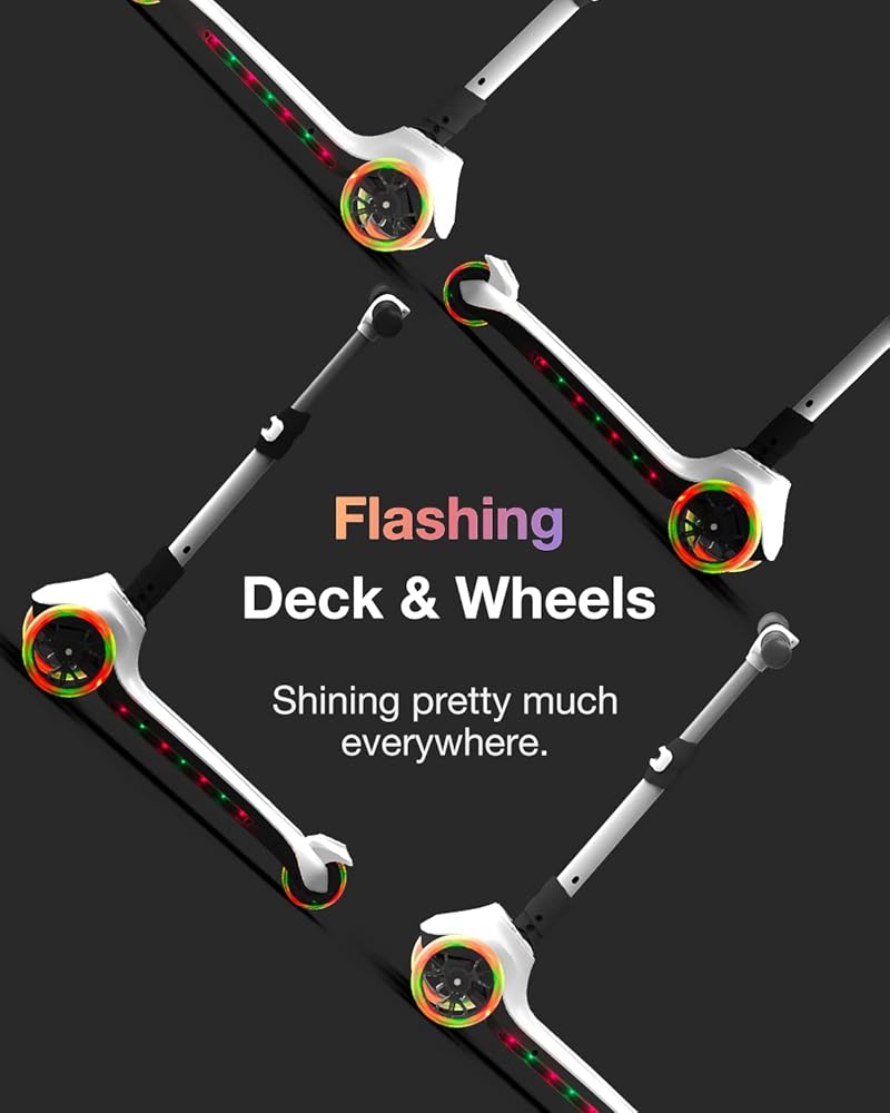 [One Finger Start] Improved maneuverability. Boost the 3 wheel scooter for kids ages 3-9 with a thumb instead of an annoying foot sensor. Stand wherever you want on the extra-wide flashing anti-slip deck, lean to steer, and enjoy continuous electric power. This light up scooter with fantastic flashing wide deck and 3 LED big wheels make your kid the shining star. 3 adjustable heights(26''/28''/30'') fit kids 3-9 years old. Surprising birthday gift for young kids and toddlers 2023