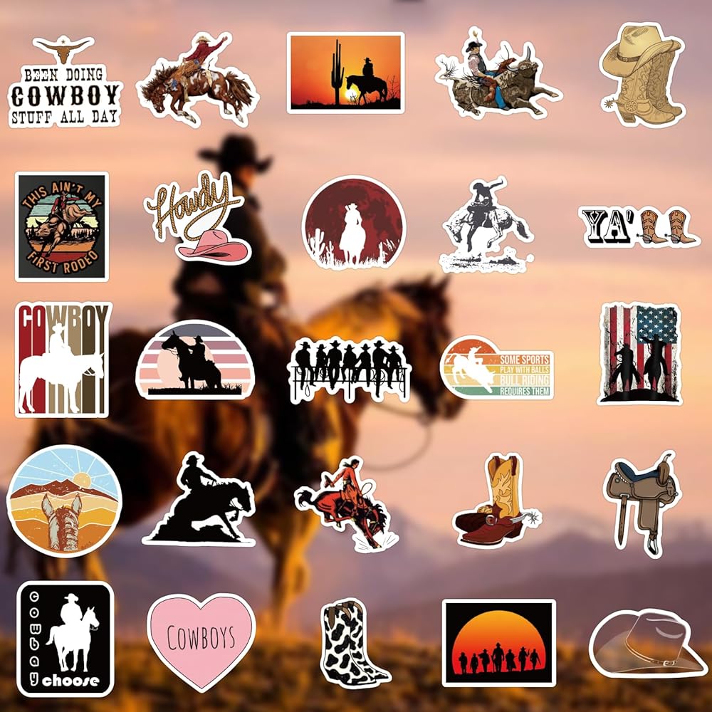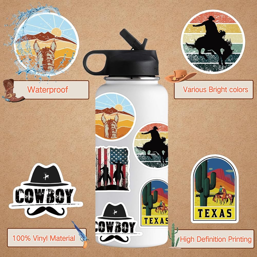 ✌High quality sticker: The sticker is made of waterproof PVC material which are sun protection and waterproof.About 2-3.6 inches 51 pieces of Western Stickers No duplicates.