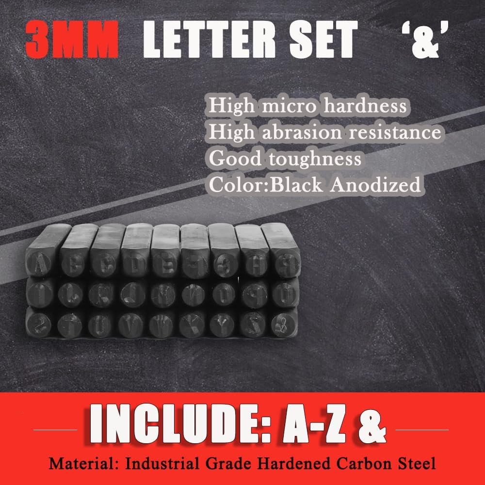 【حجم الانطباع】مجموعة احترافية مكونة من 36 قطعة من الأرقام المعدنية الفولاذية ومجموعة ثقب الحروف (1/8 بوصة) 3 مم، حافظة كبيرة، جميع الطوابع مصنوعة من سبائك الفولاذ عالي الجودة من أجل القوة والصلابة، الصلابة: Hrc 58-62.
