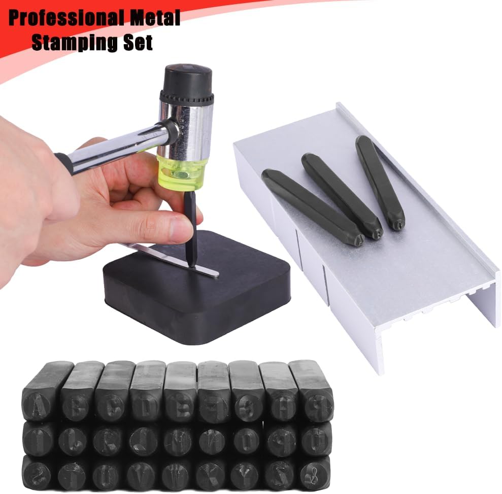【مجموعة ختم معدنية احترافية】سوف تستمتع على الفور بمجموعة الطوابع المعدنية الأكثر اكتمالاً التي تصنعها بنفسك! تتضمن مجموعة ختم 36 قطعة تتضمن 26 قطعة. حرف كبير (A-Z)، قطعة واحدة. الرموز (&) ,9 قطع. الرقم (0-9)، يمكن استخدام الرقم "6" العكسي كرقم "9".